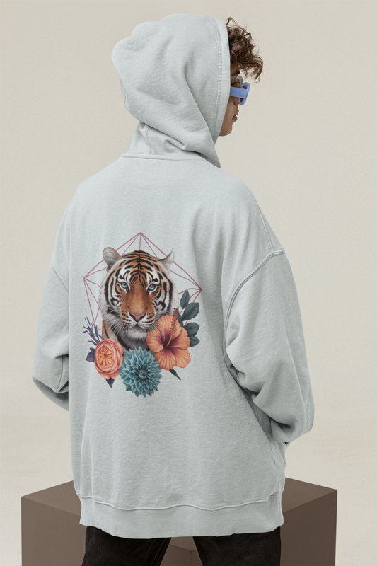 Tiger Passion in Blumen Flower Power Back - Unisex Bio Oversized Hoodie ST/ST SH