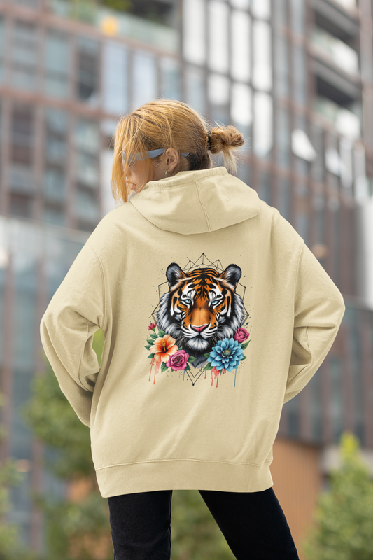 Tiger Passion in Blumen Hexagon Front - Unisex Bio Erwachsenen Cruiser Hoodie ST/ST SH