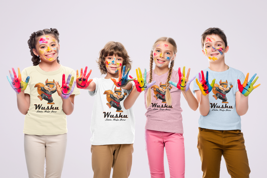 Wushu LNH Kinder T-Shirt Kurzarm-Shirt Bio Baumwolle Hochwertig - Wushu Little Ninja Hero - Mini Creator 2 T-Shirt ST/ST SH