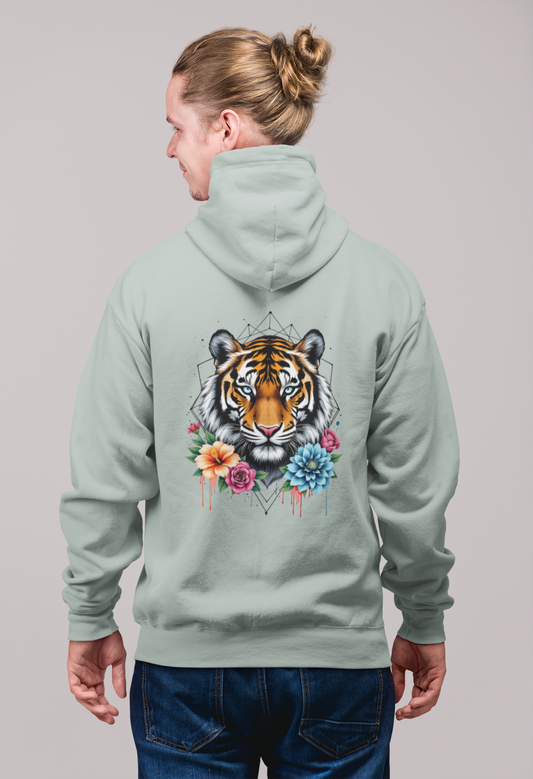 Tiger Passion in Blumen Hexagon Front - Unisex Bio Erwachsenen Cruiser Hoodie ST/ST SH