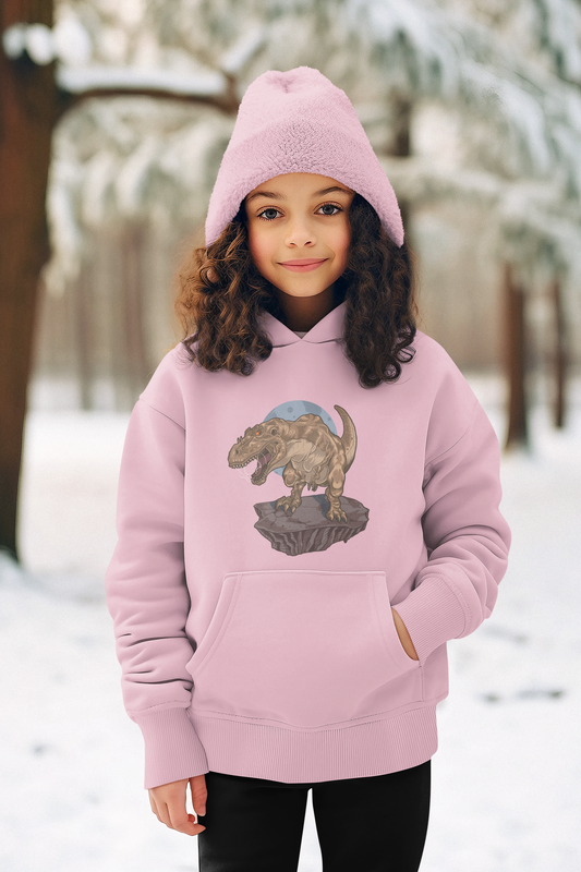 Dinosaurier Rex auf Fels - Hochwertiger Mittelschwerer Fleece-Hoodie für Jugendliche - Weltweit Verfügbar - GL