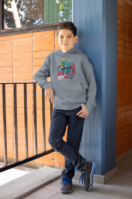 Cartoon Krokodil Skater New York Never give up - Hochwertiger Mittelschwerer Fleece-Hoodie für Jugendliche - Weltweit Verfügbar - GL