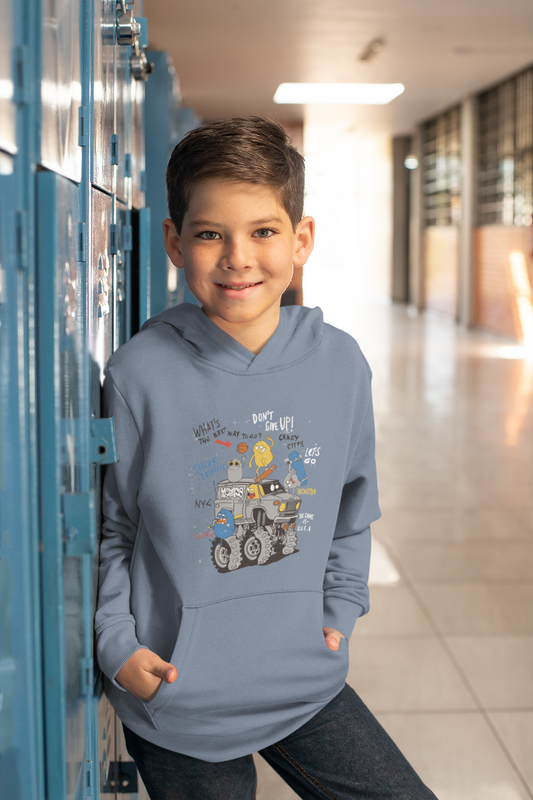 Cartoon Little Monster Brooklyn - Hochwertiger Mittelschwerer Fleece-Hoodie für Jugendliche - Weltweit Verfügbar - GL