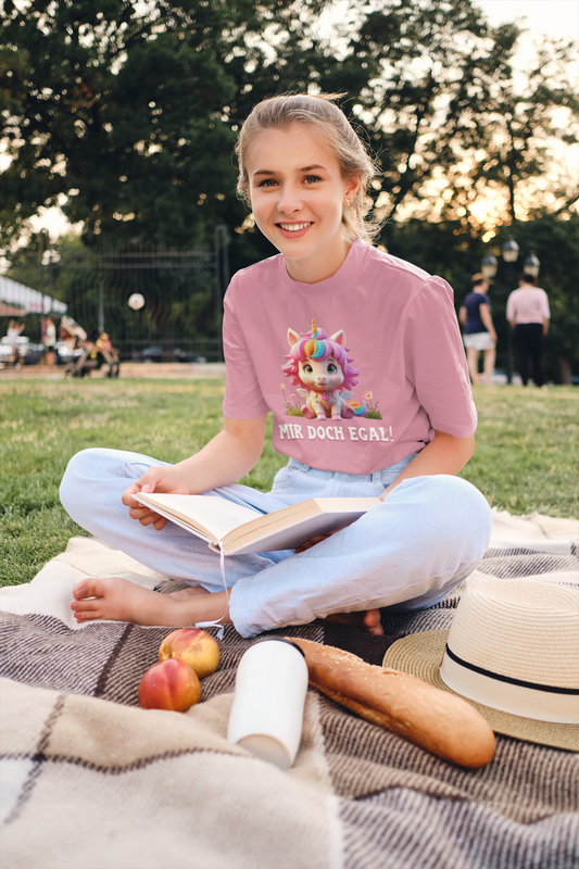 Einhorn Cute auf Wiese Mir doch egal Front- Unisex Erwachsenen Bio Creator T-Shirt ST/ST SH