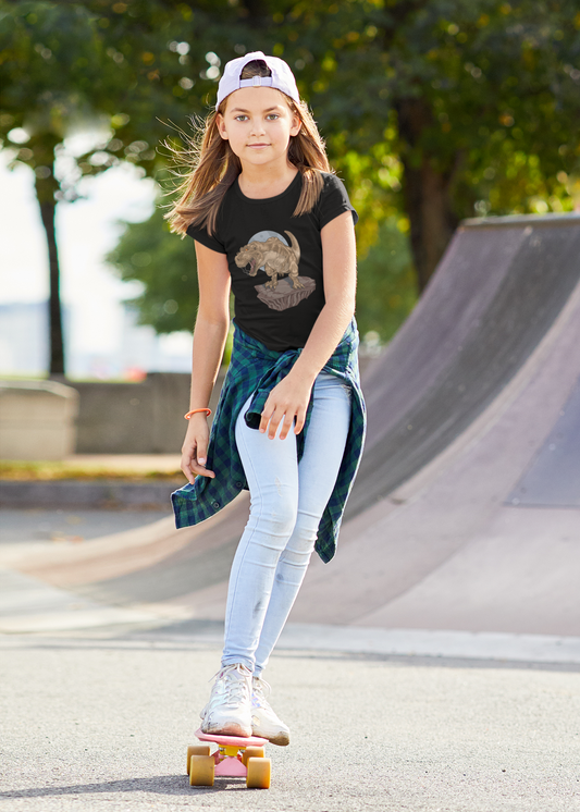 Dinosaurier auf Felsbrocken - Kinder T-Shirt Kurzarm-Shirt Baumwolle Hochwertig Langlebig - T-Shirt Kids BC SH