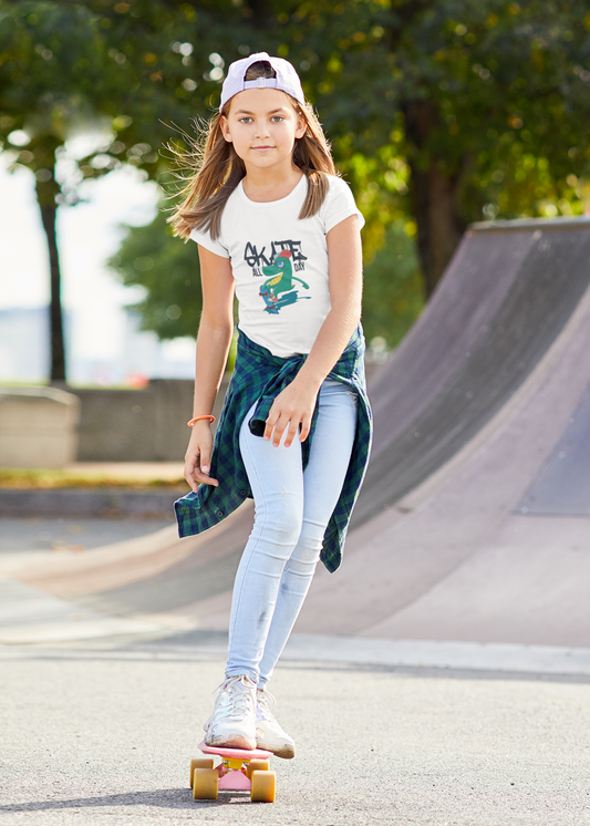 Skate all Day Krokodil - Kinder T-Shirt Kurzarm-Shirt Baumwolle Hochwertig Langlebig - T-Shirt Kids BC SH