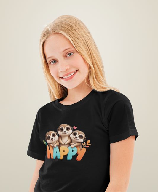 Happy Erdmännchen - Kinder T-Shirt Kurzarm-Shirt Baumwolle Hochwertig Langlebig - T-Shirt Kids BC SH