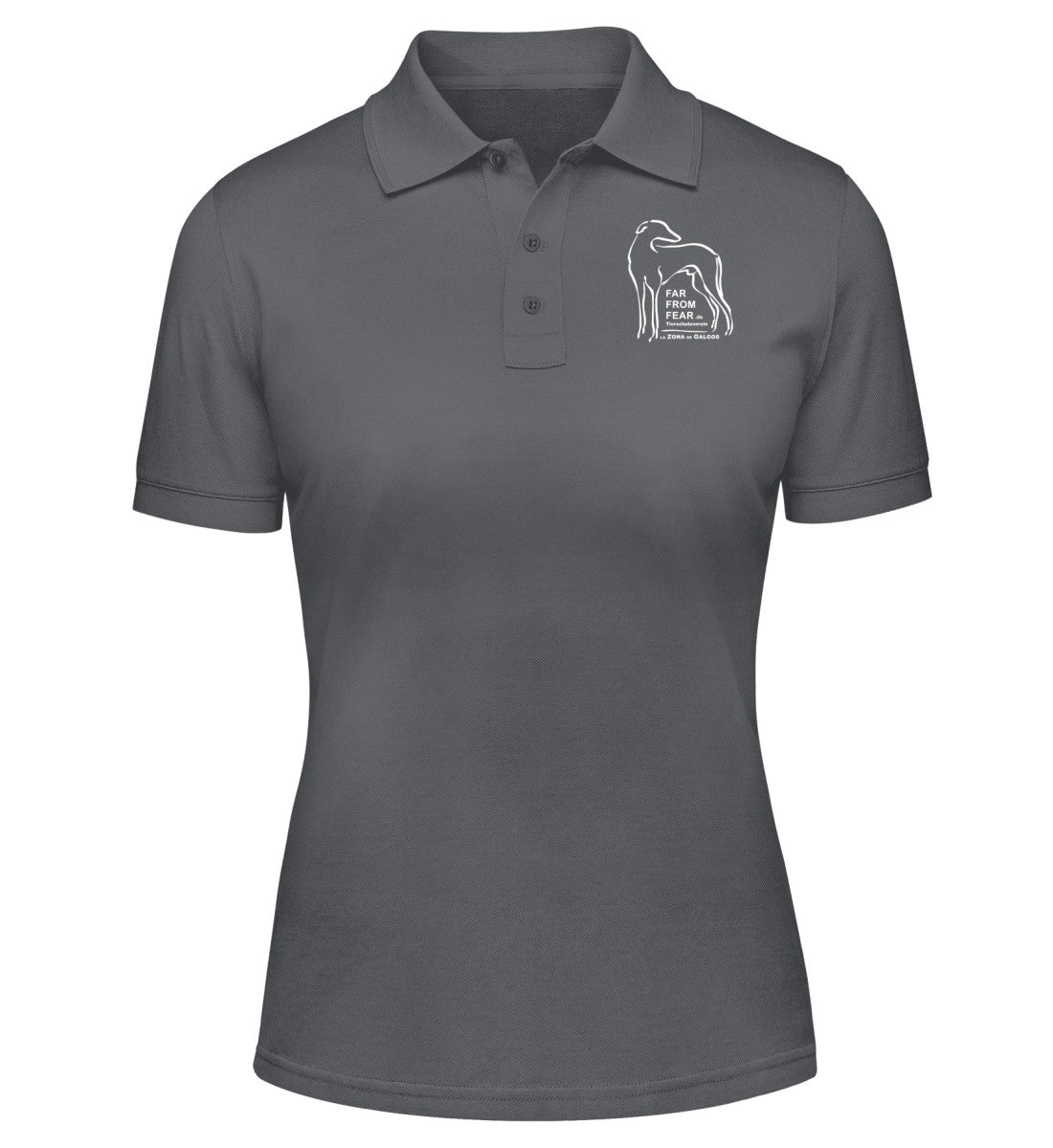 Damen organic Polo Shirt - FARFROMFEAR Tierschutz DTF-Druck Zweiseitig