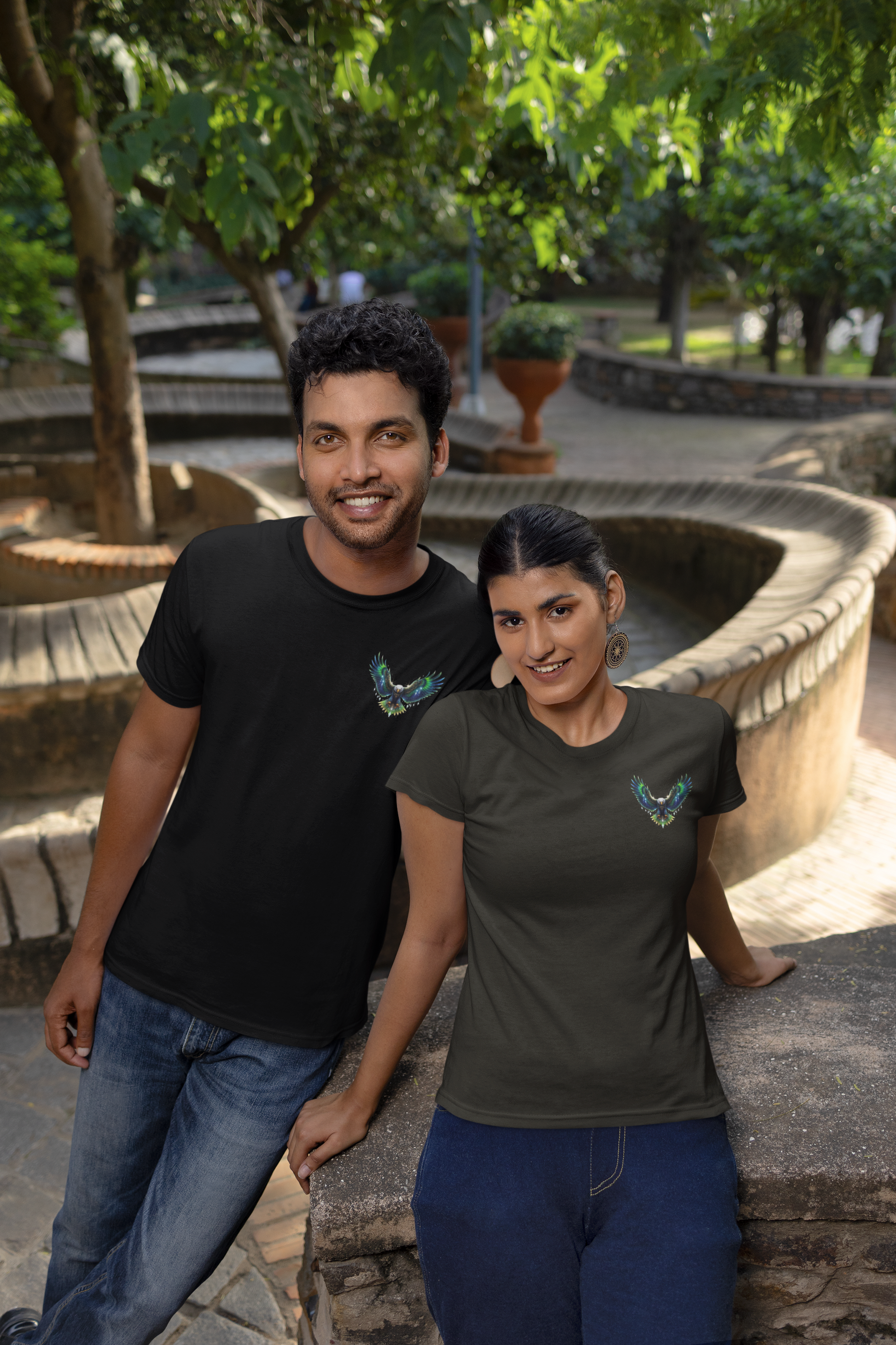 Unisex Erwachsenen Bio Baumwolle Kurzarm Shirt mit dem Design Diamanten Adler im Flug Front Mini.