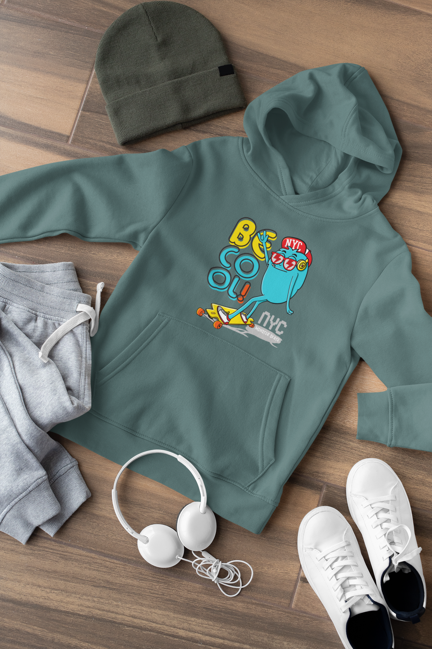 KINDER UNISEX HOODIE Cartoon Little Monster Skate NYC Be cool