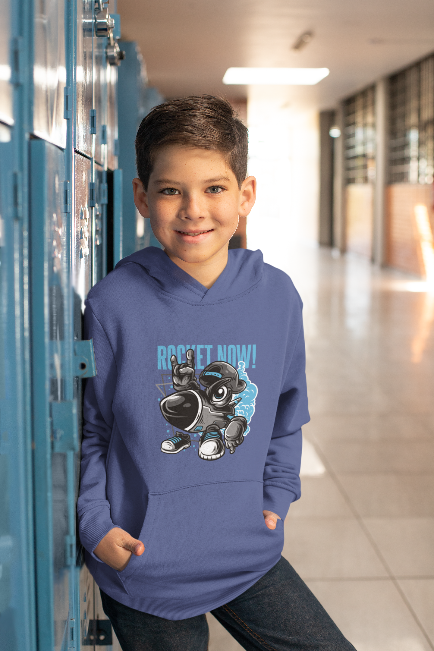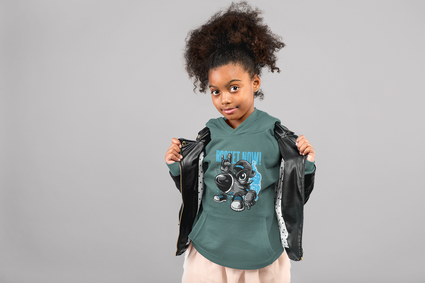 Hey, schau mal, hier ist das Iconic Kinder-Hoodie-Sweatshirt für dich! Perfekt für jeden Tag, bietet es höchsten Komfort und einen coolen, stylischen Look mit Cartoon Streetwear Rocket Now! Design. Unseren trendigen Kinder und Jugendmode Stil mit diesem Jugend Unisex Trendfashion Kinder Hoodie – ein uniquefashion Kinder Pullover.