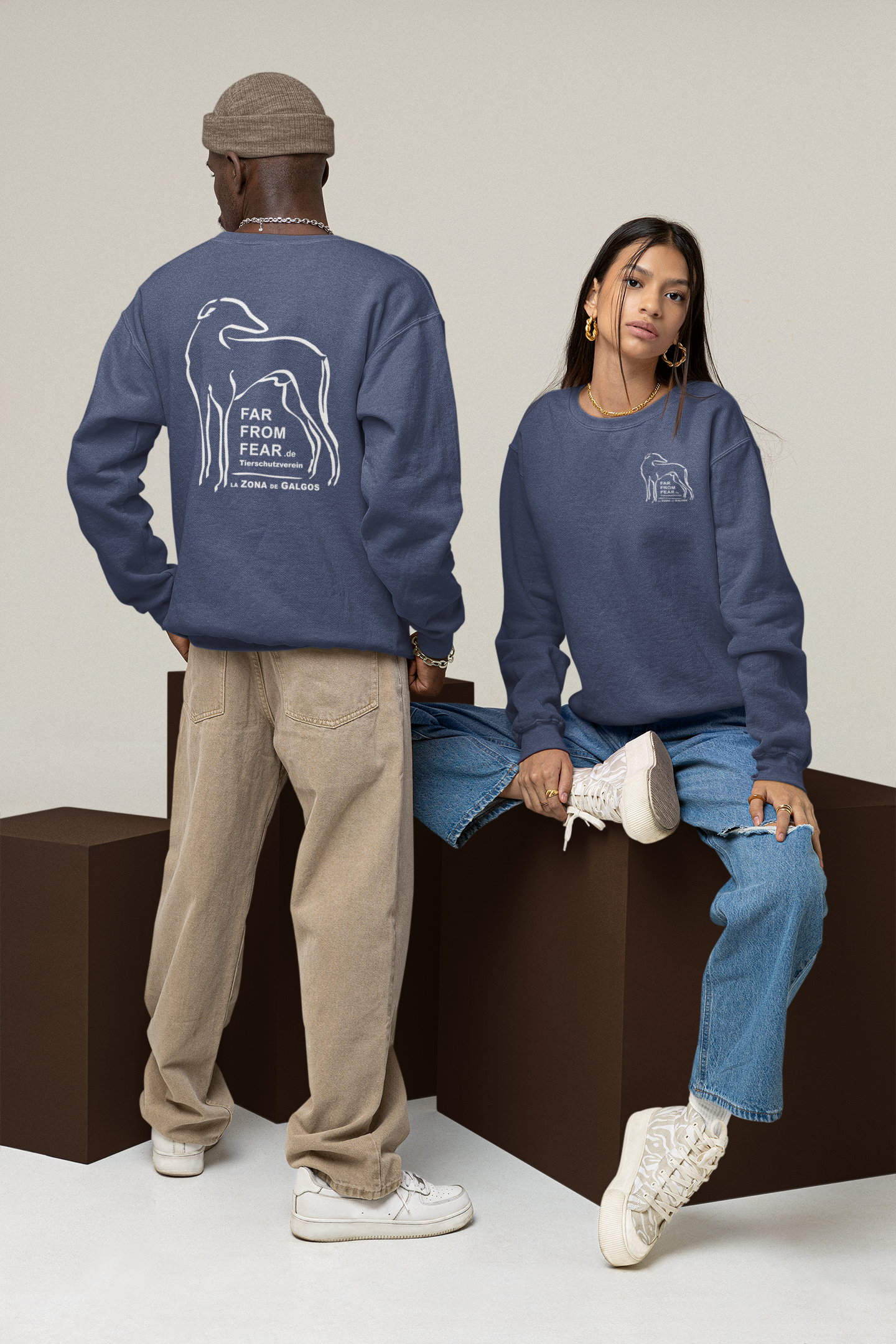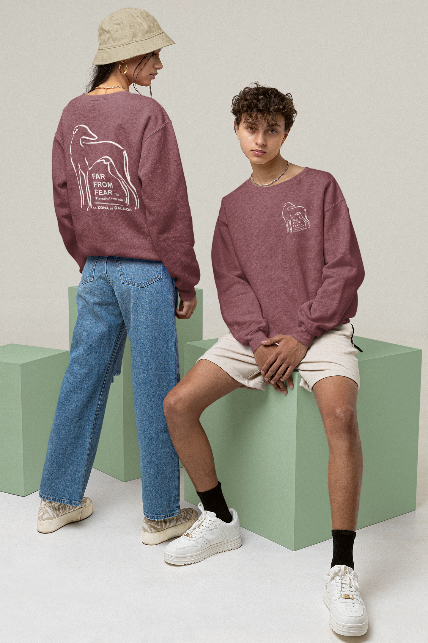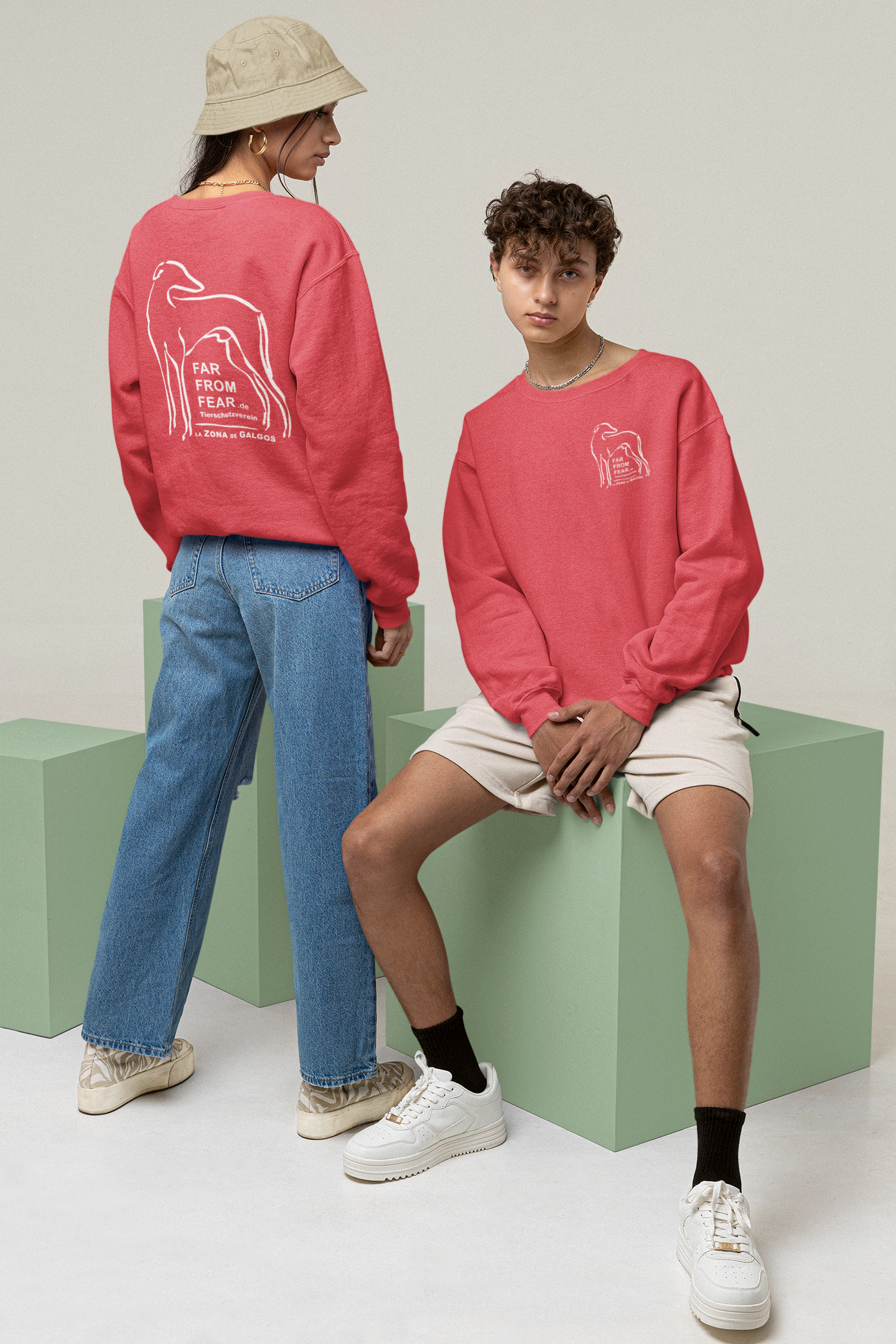 Unisex organic Changer Sweatshirt 2.0 ST/ST mit DTF Druck - FARFROMFEAR Tierschutz Zweiseitiger Druck