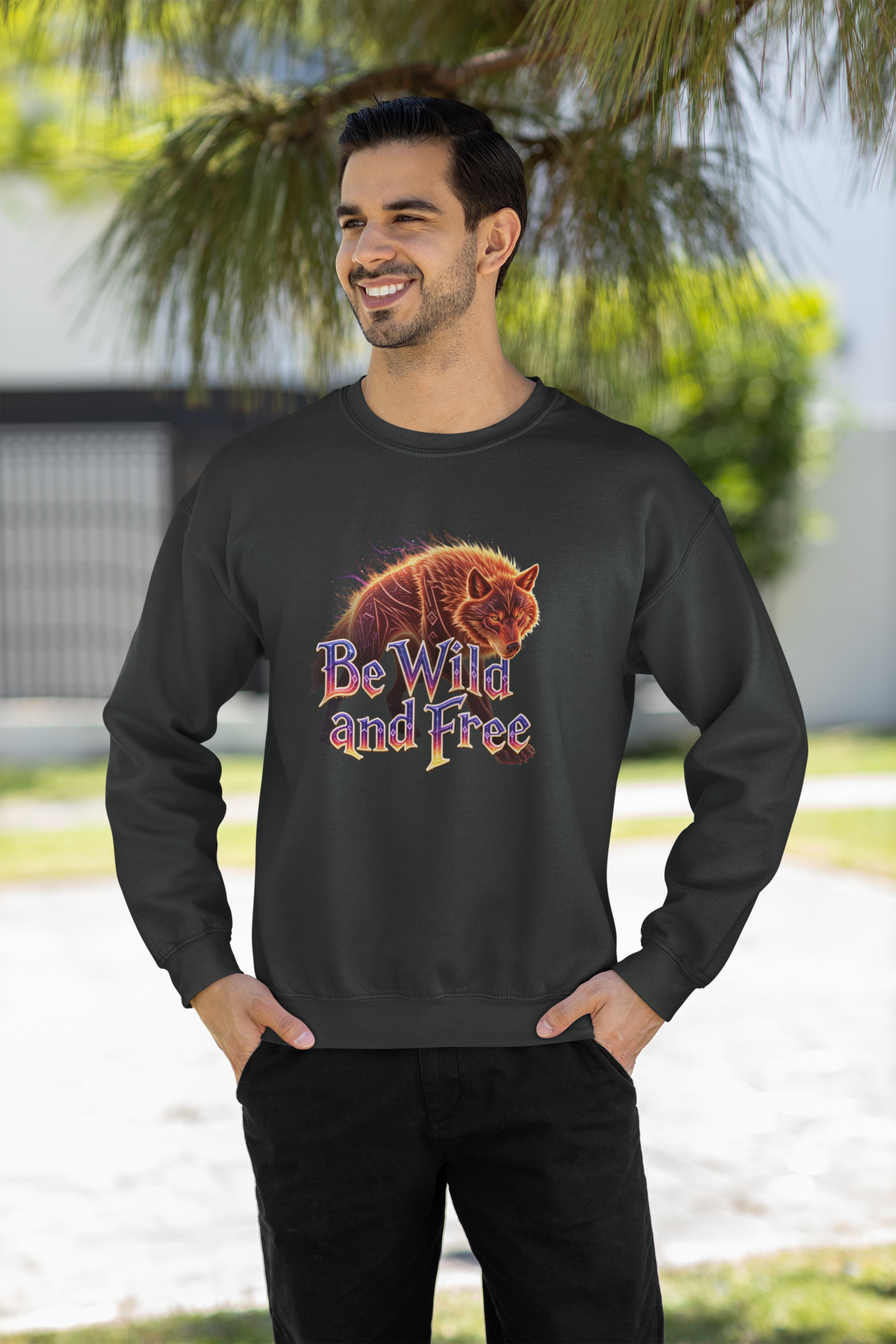 Wilder Wolf in Flammen Be Wild and Free Front - Unisex Erwachsenen Bio Changer Sweatshirt ST/ST SH