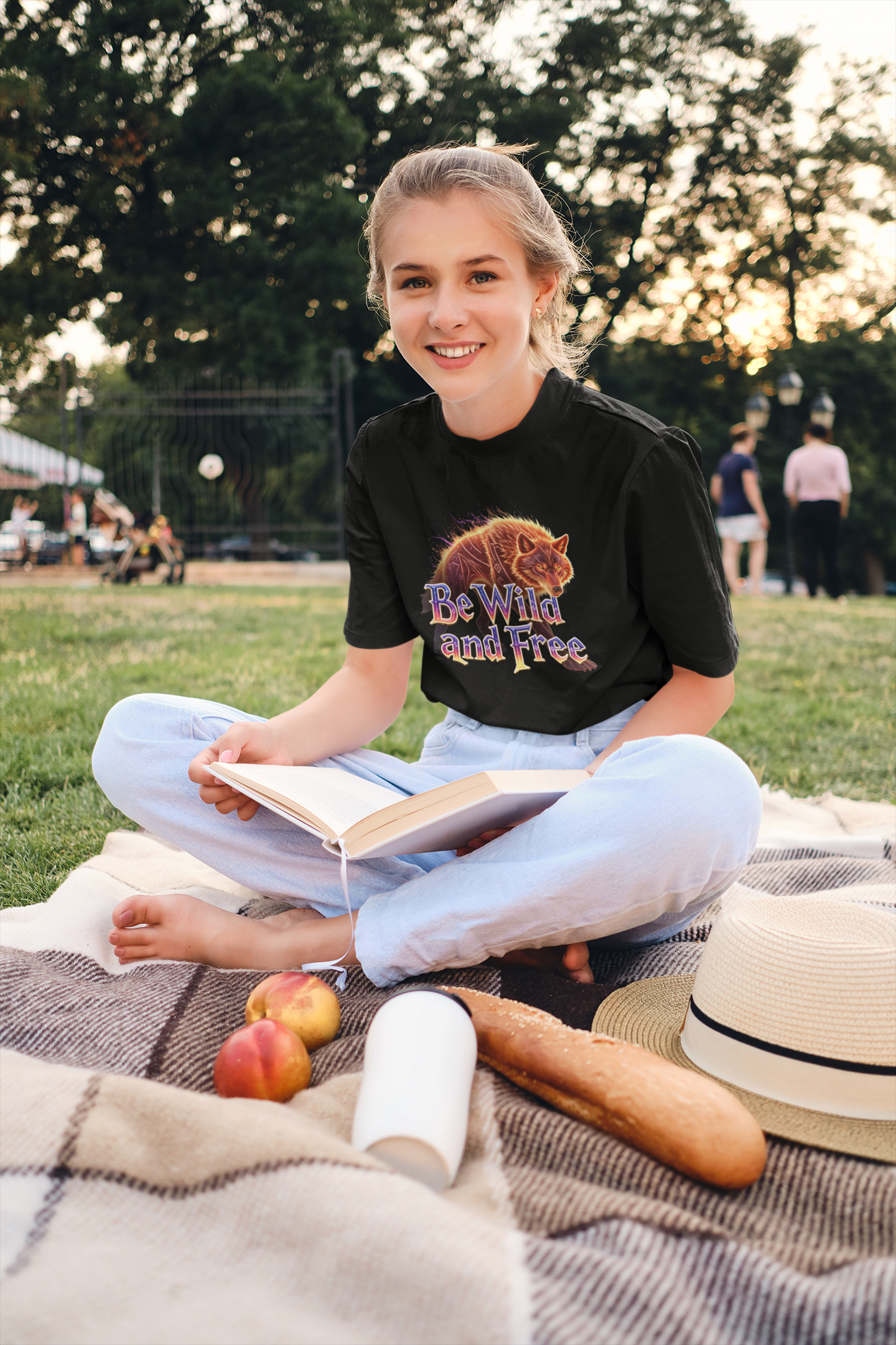 Wilder Wolf in Flammen Be Wild and Free Front - Unisex Erwachsenen Bio Creator T-Shirt ST/ST SH