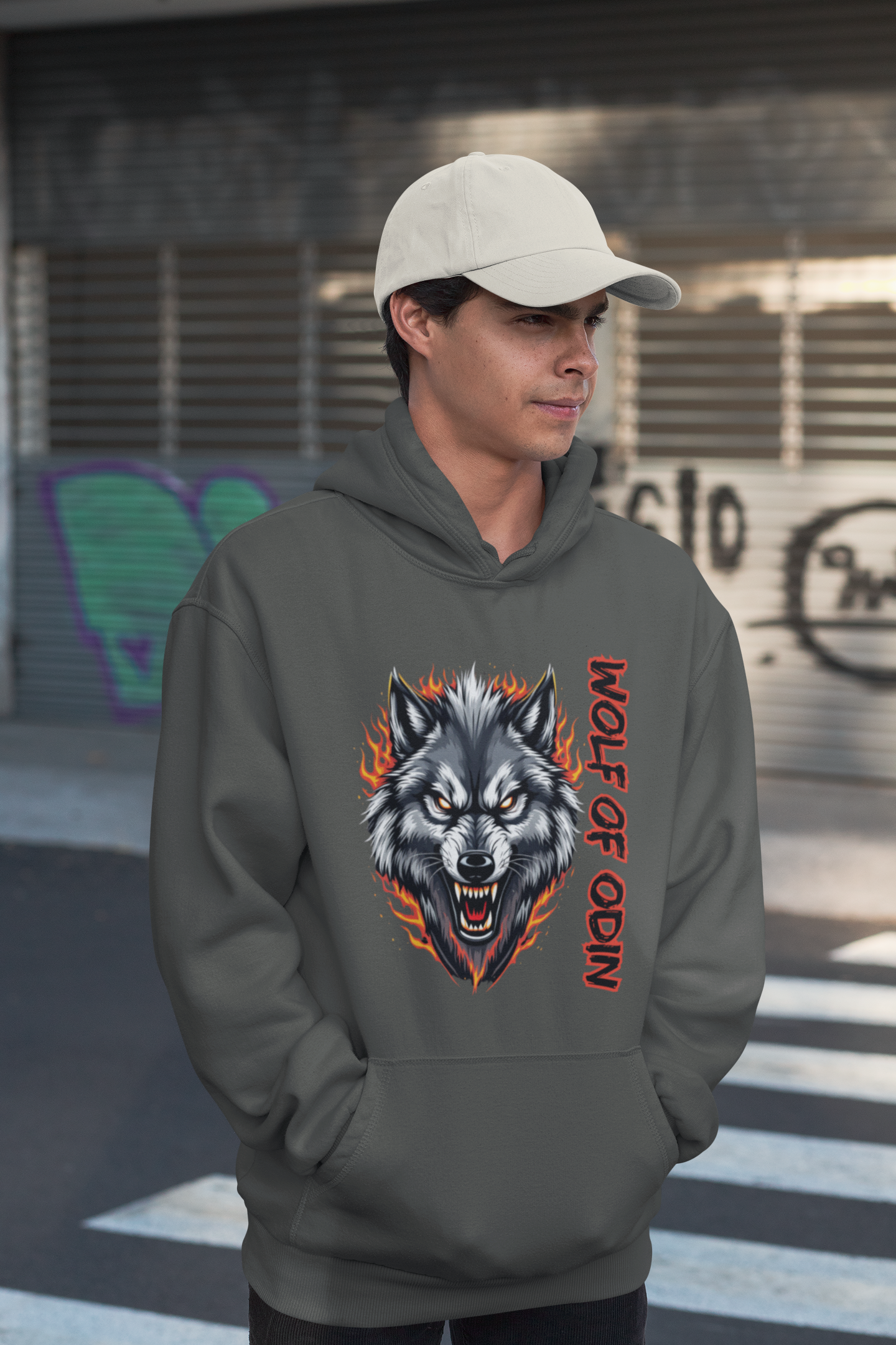 Wolf in Flammen Wolf of Odin - Unisex Erwachsenen Bio Organic Cruiser Hoodie 2.0 ST/ST