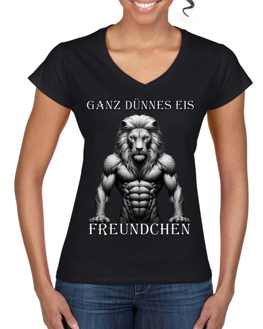Camiseta Softstyle con cuello en V para mujer León Hielo muy fino