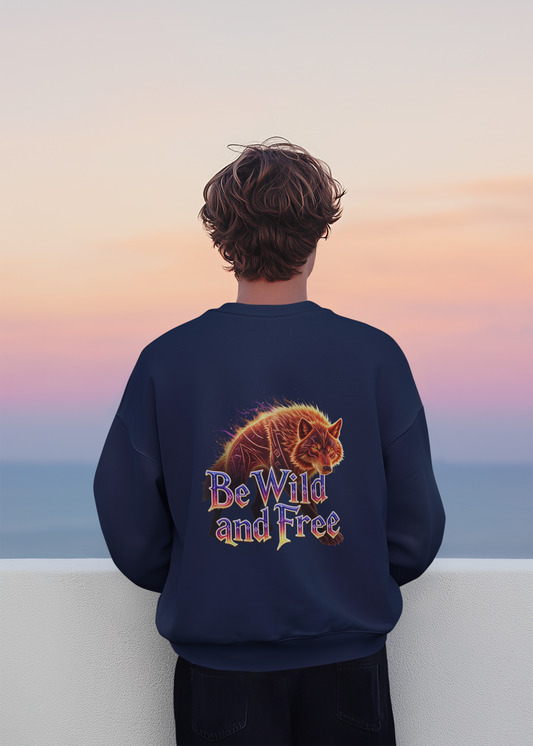 Wilder Wolf in Flammen Be Wild and Free Back - Unisex Erwachsenen Bio Changer Sweatshirt ST/ST SH