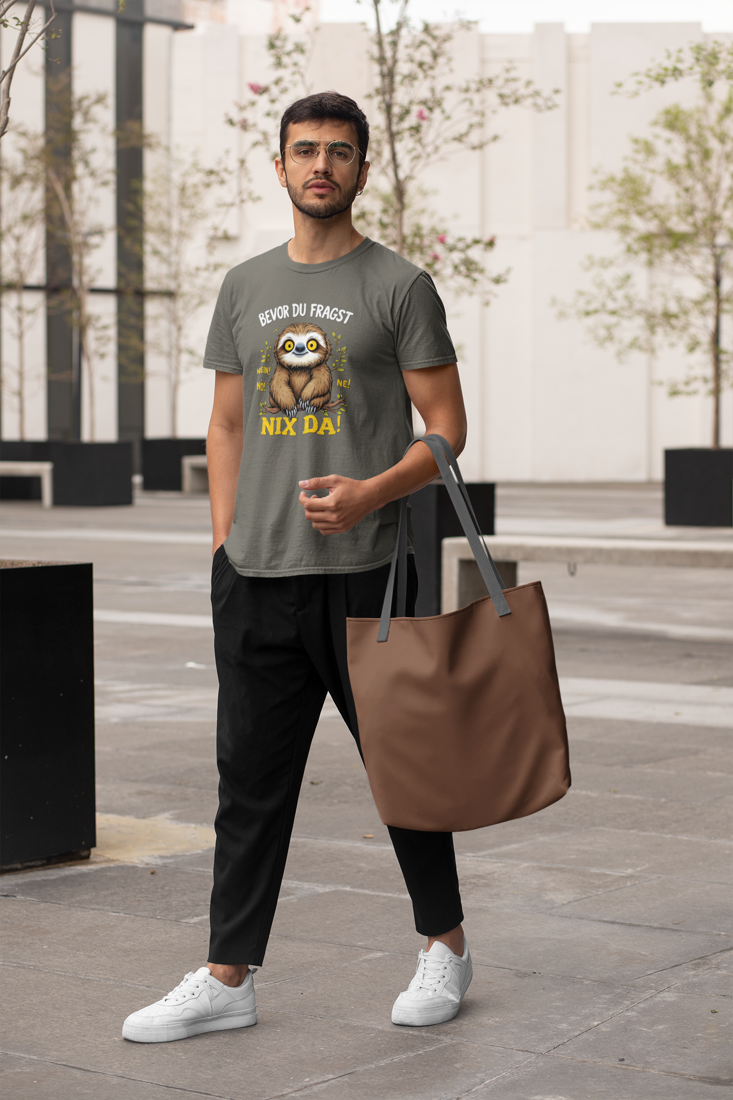 Bevor du Fragst - Nein! Nö! Ne! Nix Da! Faultier groß Front - Unisex Erwachsenen Bio Baumwolle Kurzarm Shirt Creator T-Shirt 2.0 ST/St SH