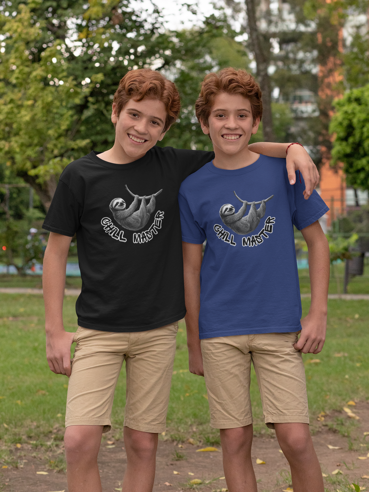 Unisex Kinder T-Shirt mit dem einzigartigen Design Chill Master Faultier SW Front.