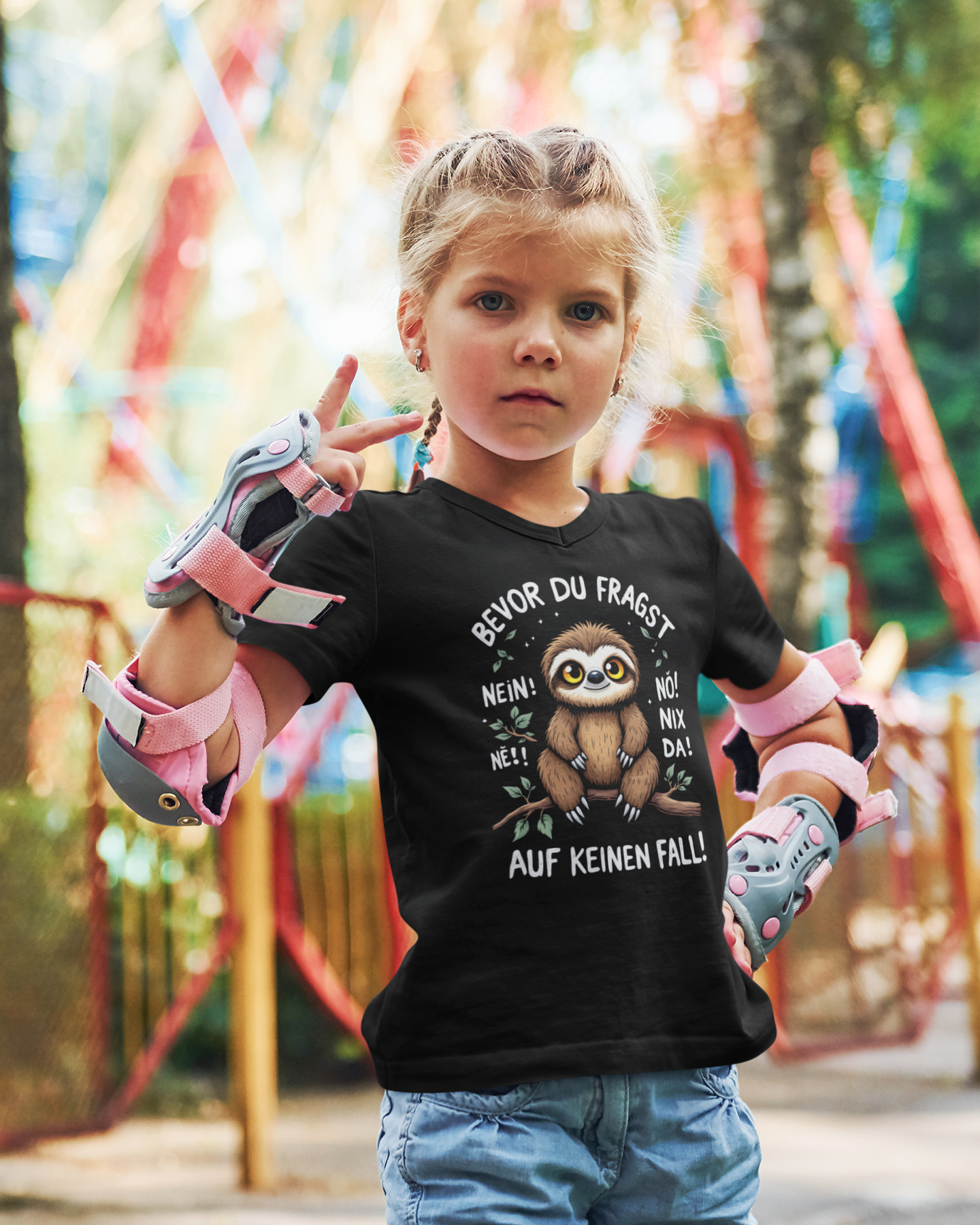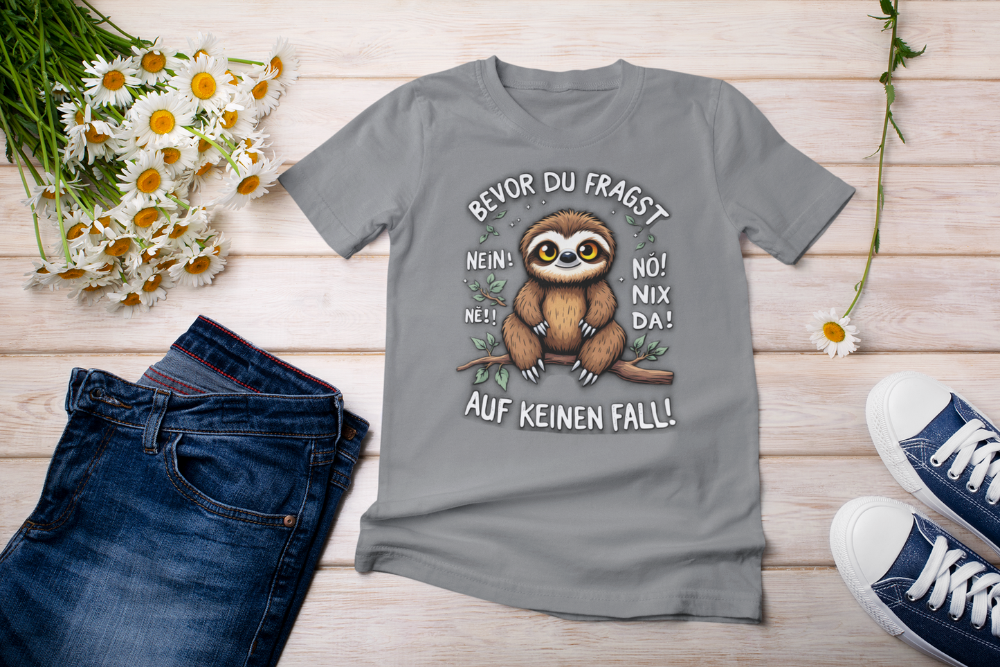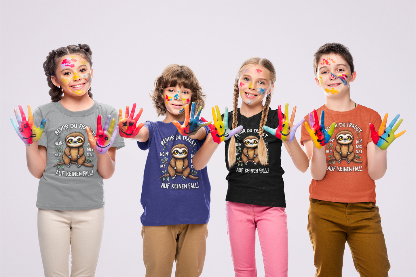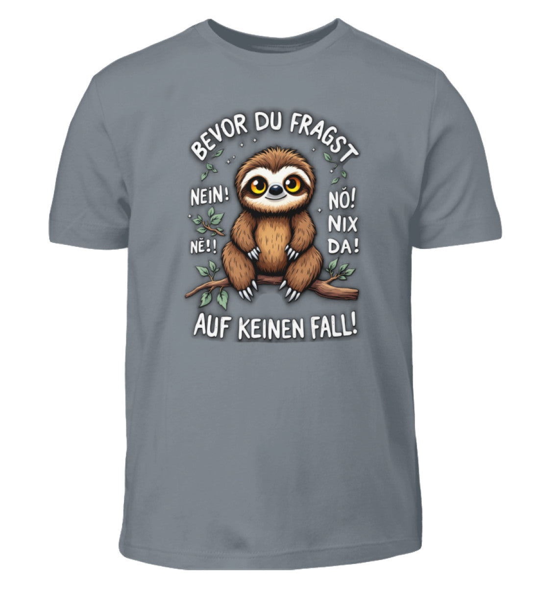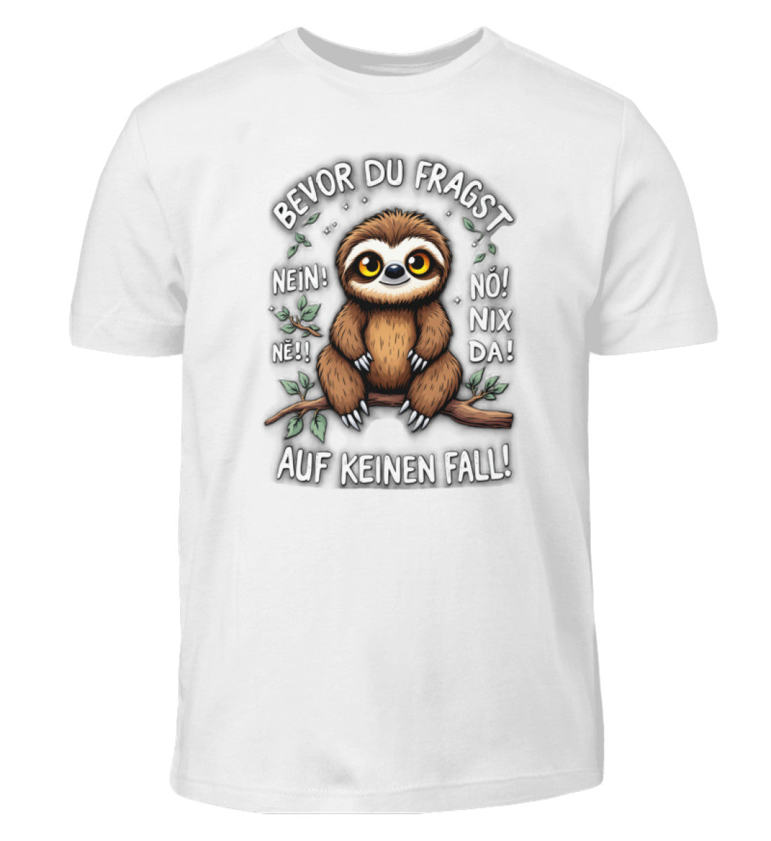 Unisex Kinder T-Shirt mit dem einzigartigen Design Bevor du Fragst - Nein! Ne! Nö! Nix Da! Faultier.