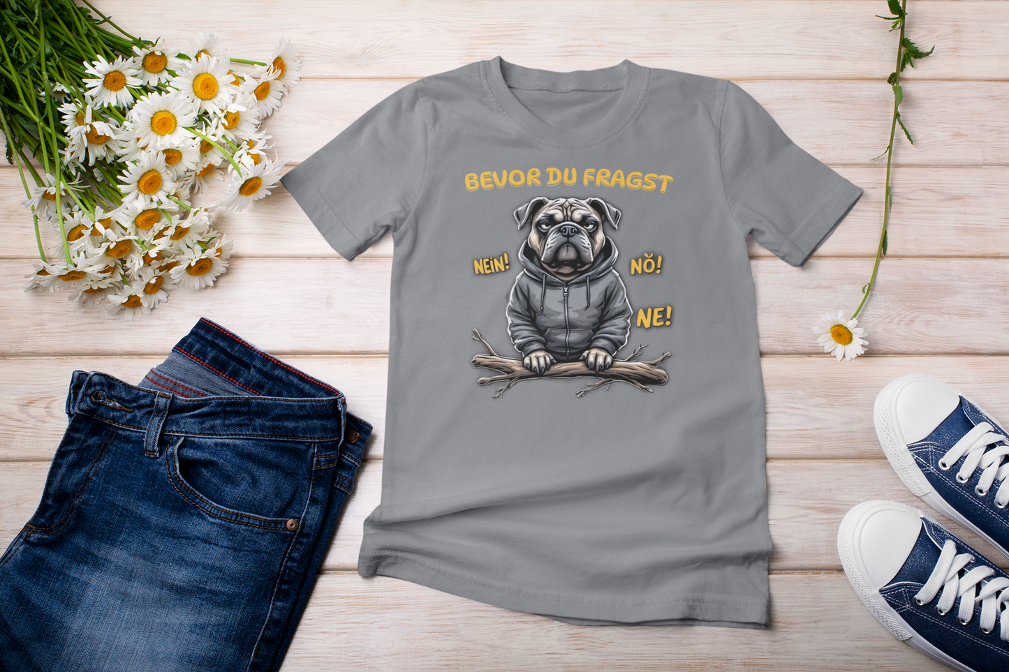 Bevor du Fragst - Nein! Nö! Ne! Hund - Unisex Kinder T-Shirt Kurzarm-Shirt Bio Baumwolle Hochwertig Langlebig T-Shirt Kids BC SH
