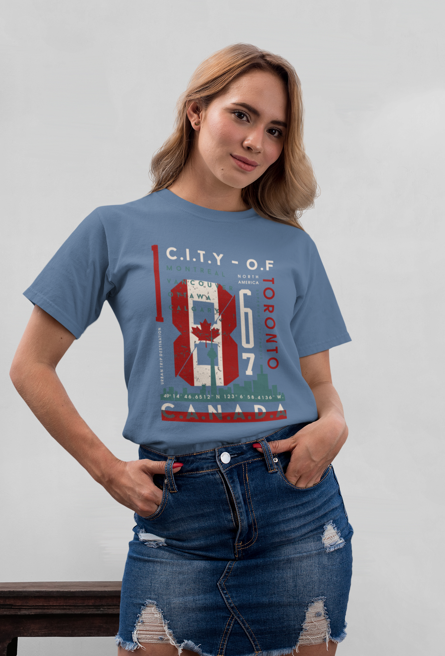 Unisex Erwachsenen Bio Baumwolle Kurzarm Shirt mit dem Design CITY OF Montreal Toronto Front.