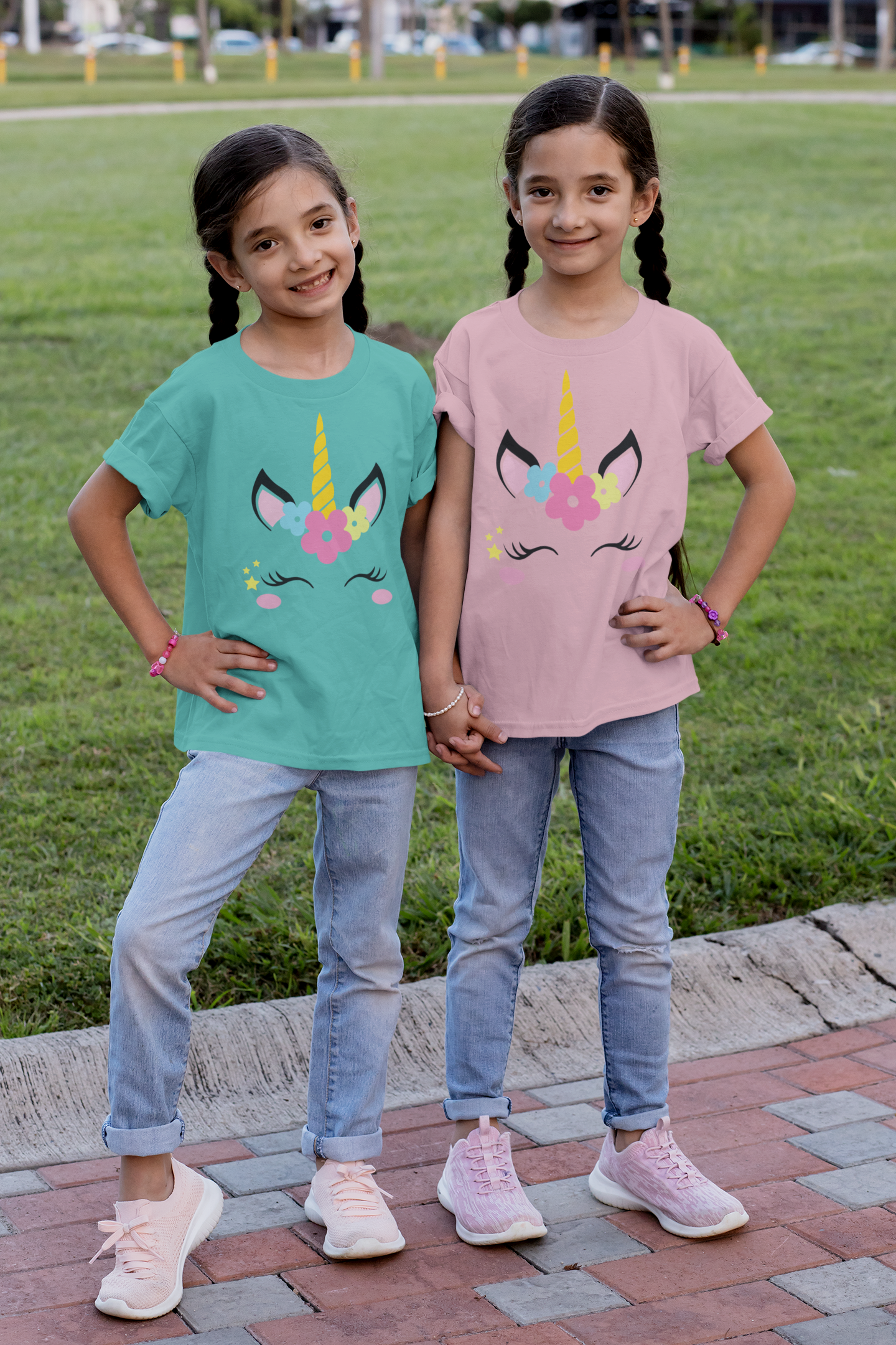 Unisex Kinder T-Shirt mit dem einzigartigen Design Einhorn Flower Unicorn Face Front.