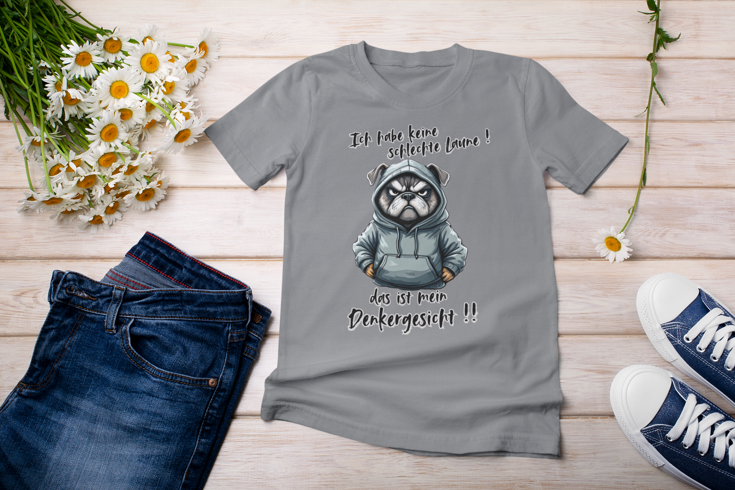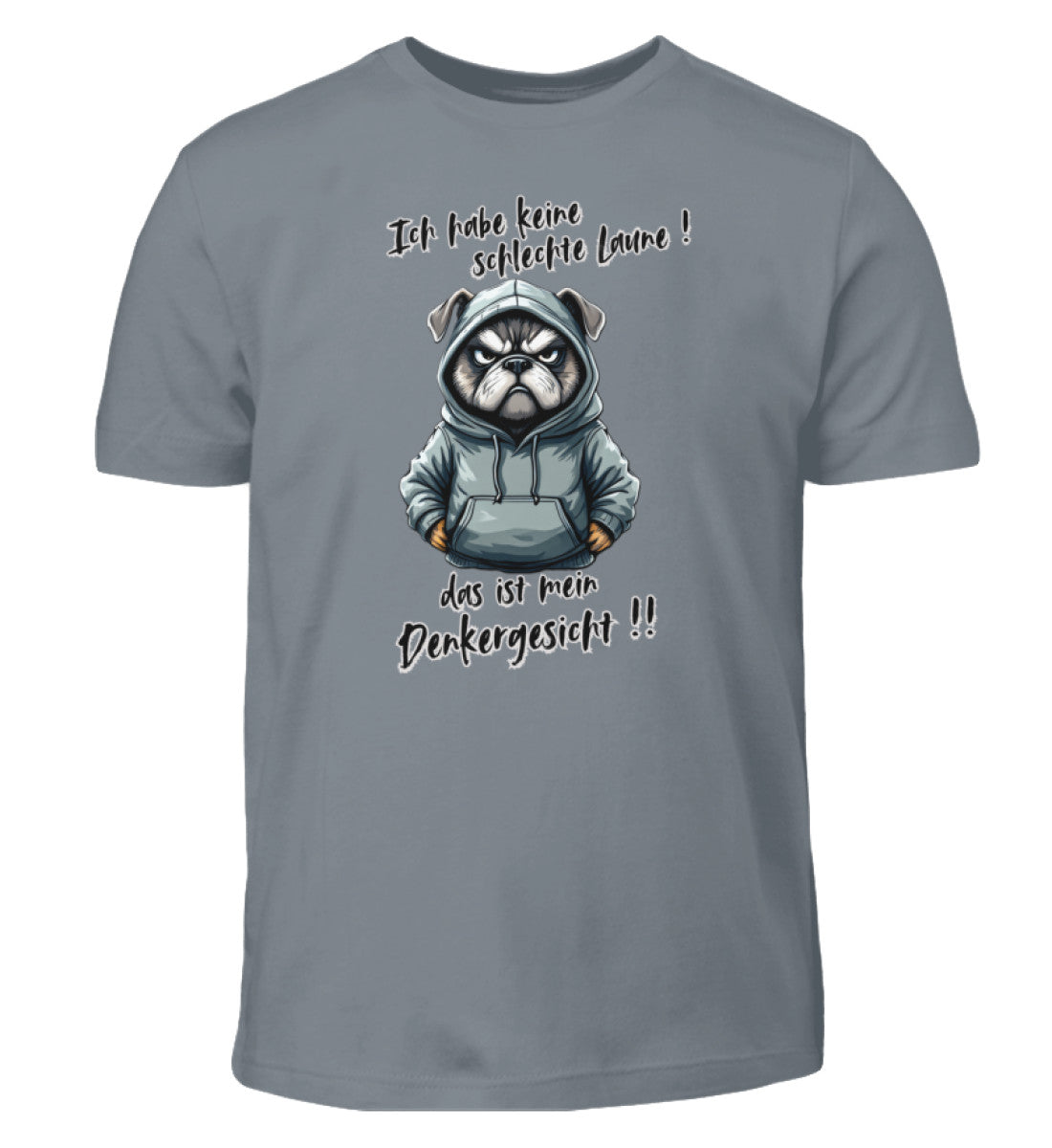 Ich habe keine schlechte Laune! Das ist mein Denkergesicht! Hund Hoody-Unisex Kinder Kurzarm-Shirt BioBaumwolle Langlebig T-Shirt Kids BC SH