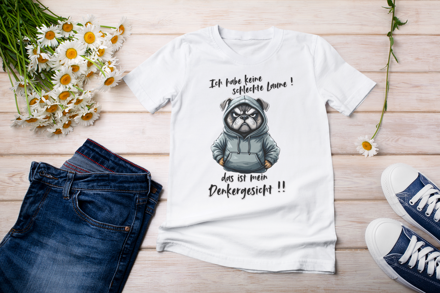 Unisex Kinder T-Shirt mit dem einzigartigen Design Ich habe keine schlechte Laune! Das ist mein Denkergesicht! Hund Hoody.