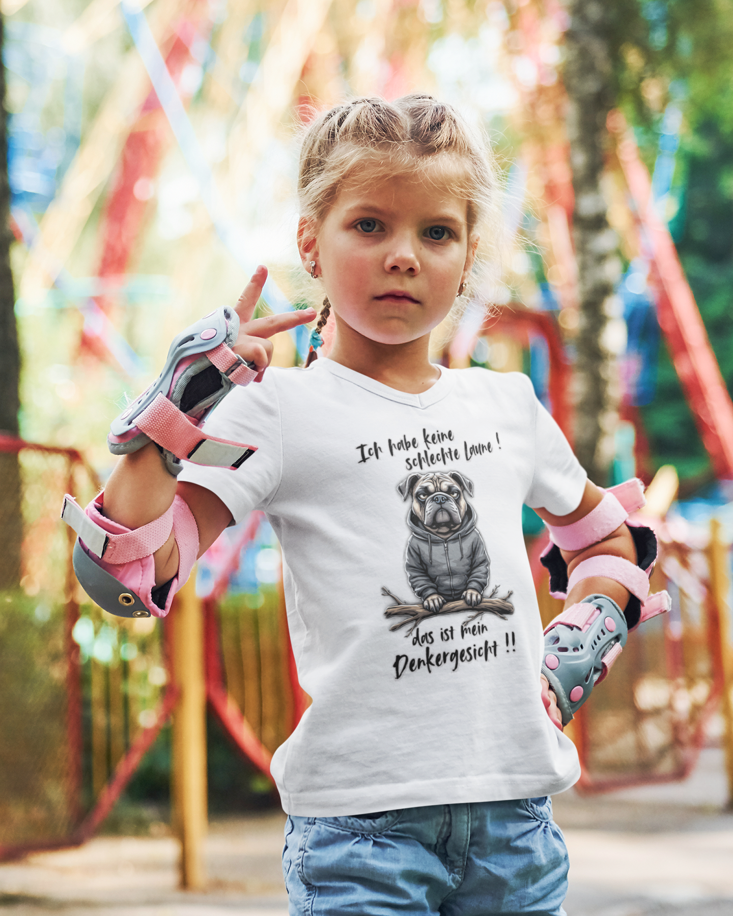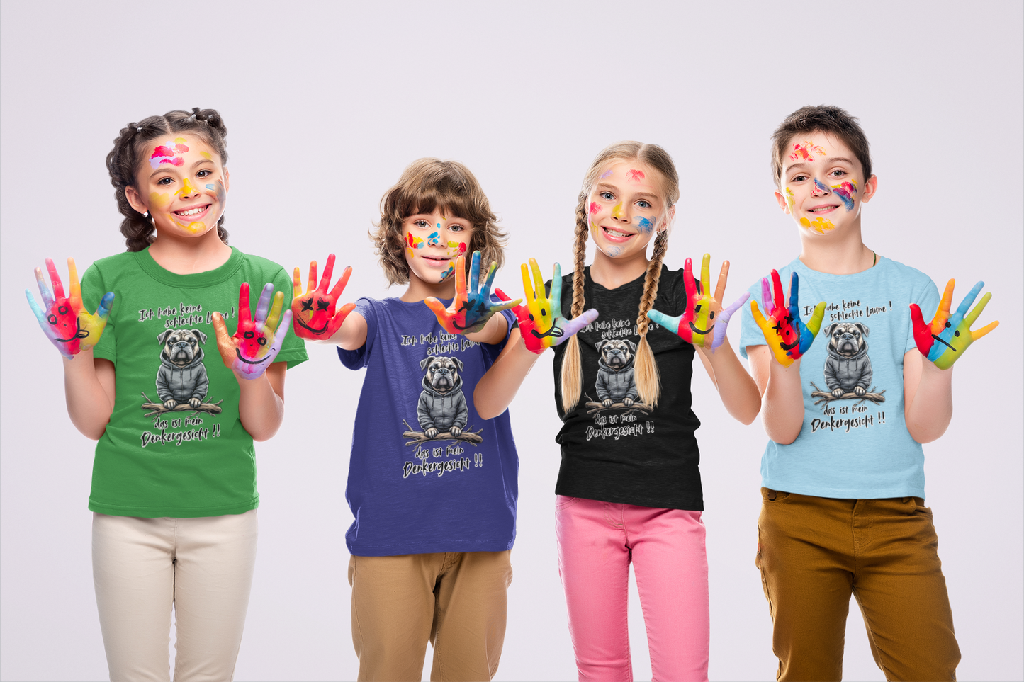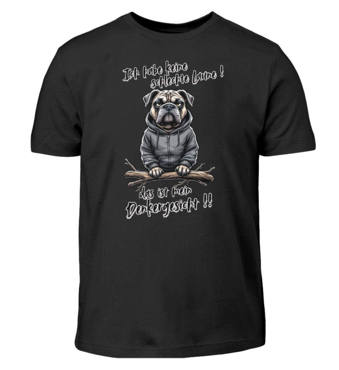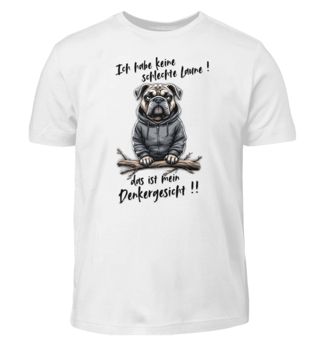 Unisex Kinder T-Shirt mit dem einzigartigen Design Ich habe keine schlechte Laune! das ist mein Denkergesicht Hund.