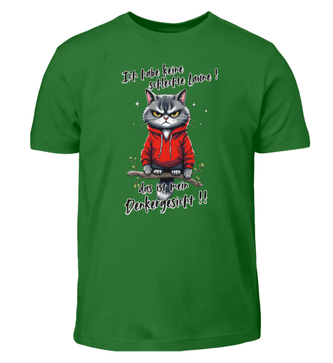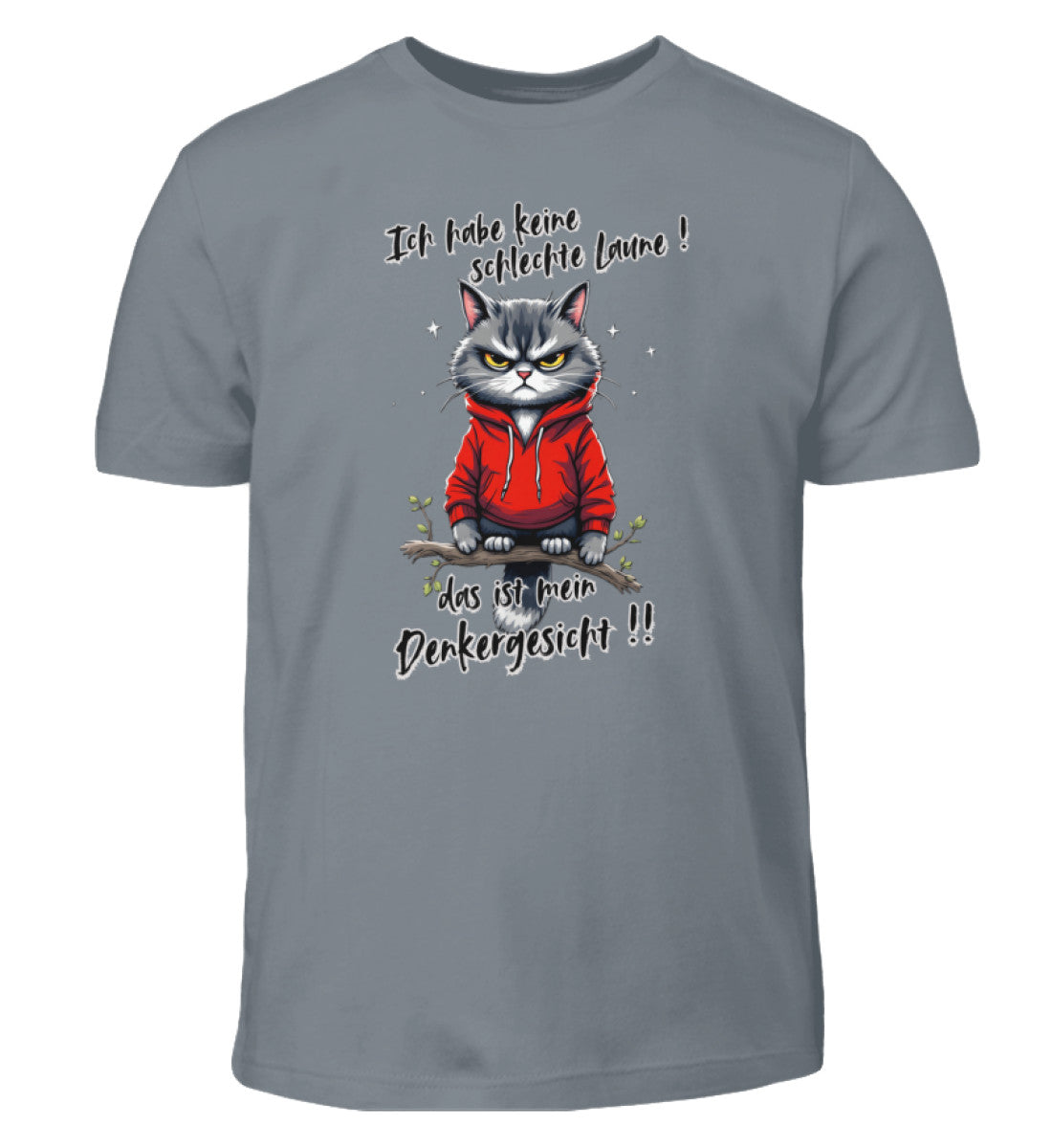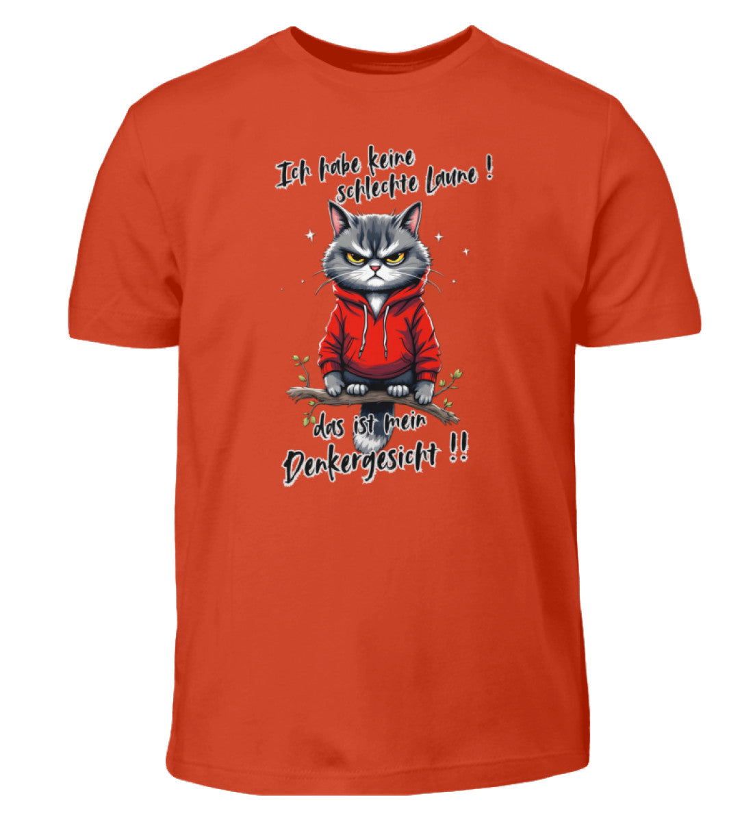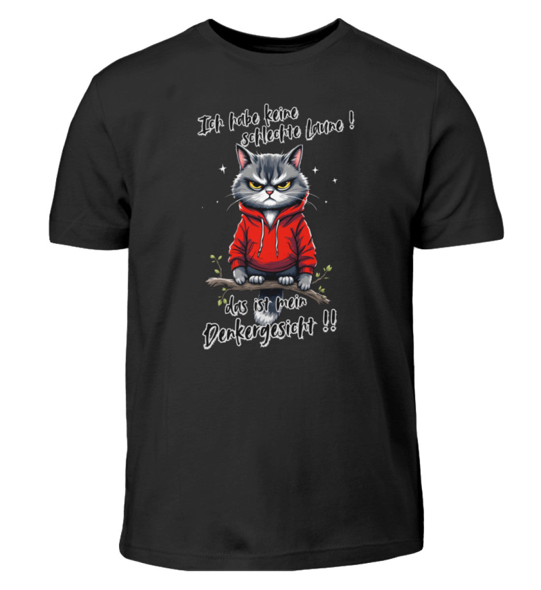 Ich habe keine schlechte Laune! Das ist mein Denkergesicht! Katze - Unisex Kinder Kurzarm-Shirt Bio Baumwolle Hochwertig Langlebig T-Shirt Kids BC SH