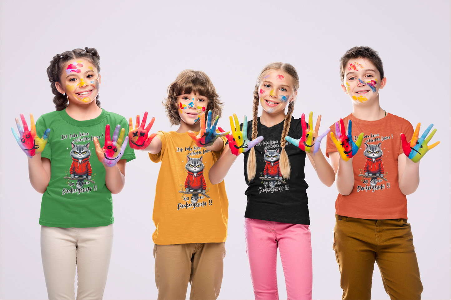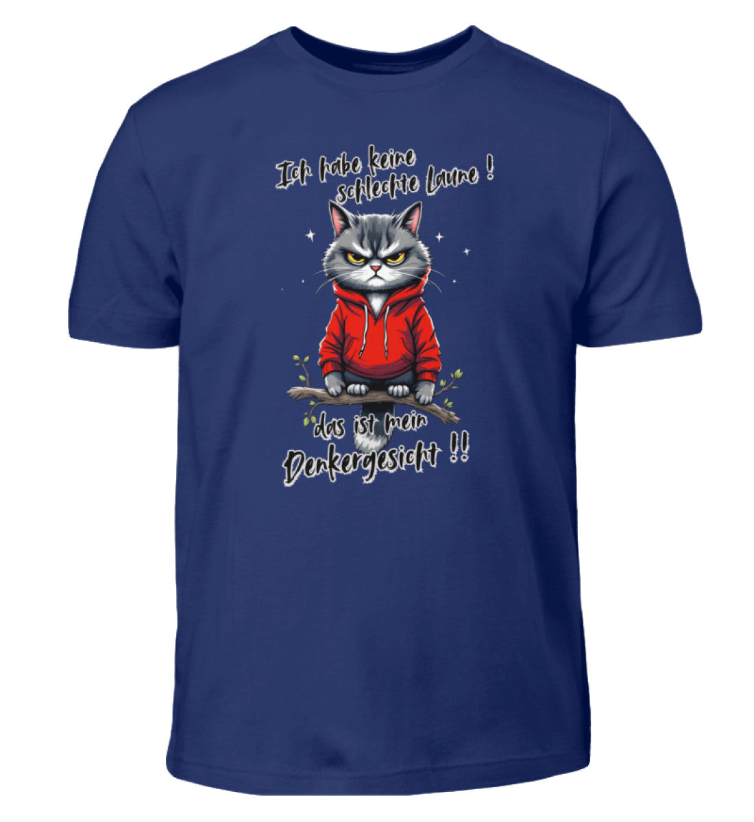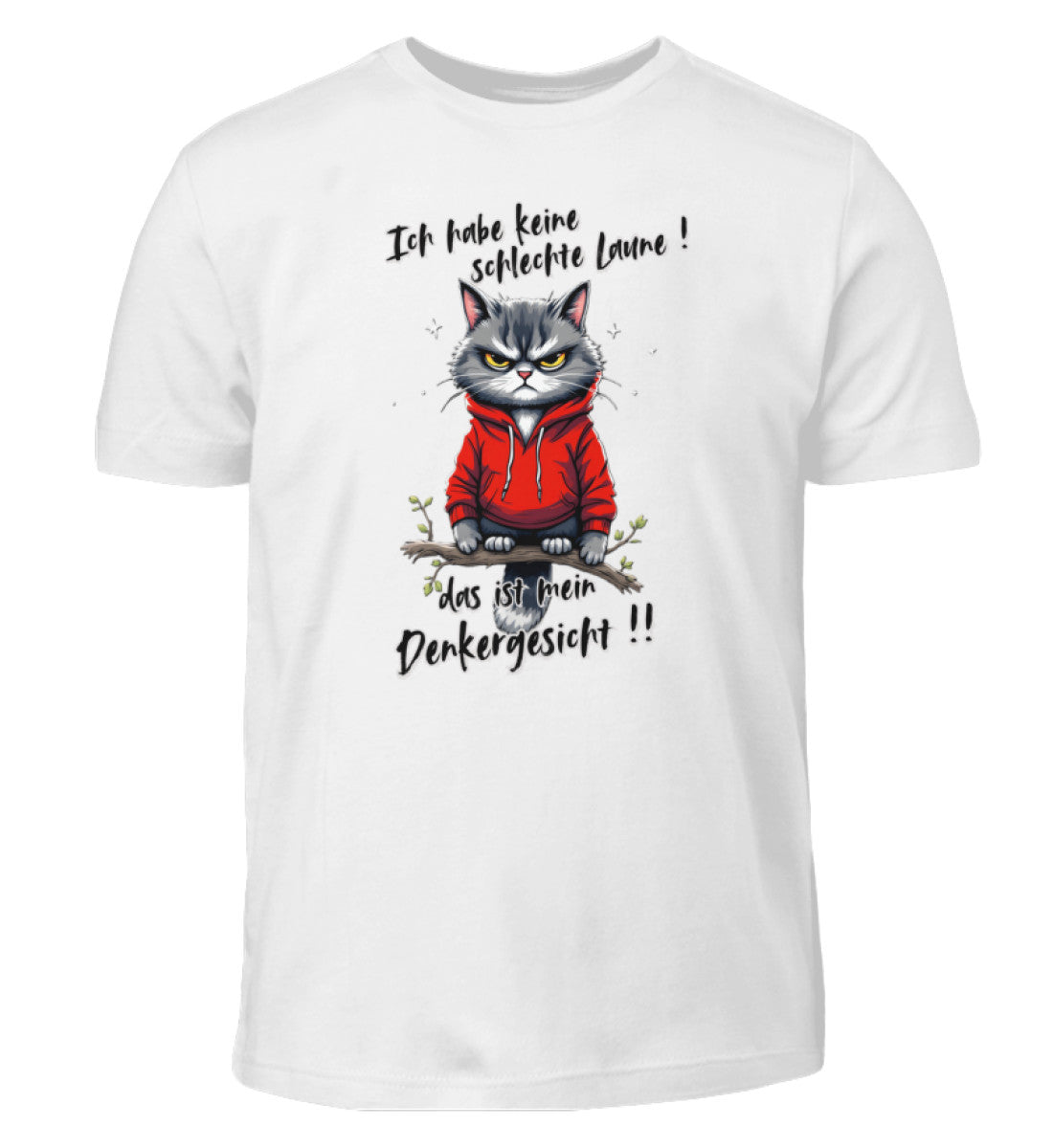Unisex Kinder T-Shirt mit dem einzigartigen Design Ich habe keine schlechte Laune! Das ist mein Denkergesicht! Katze.