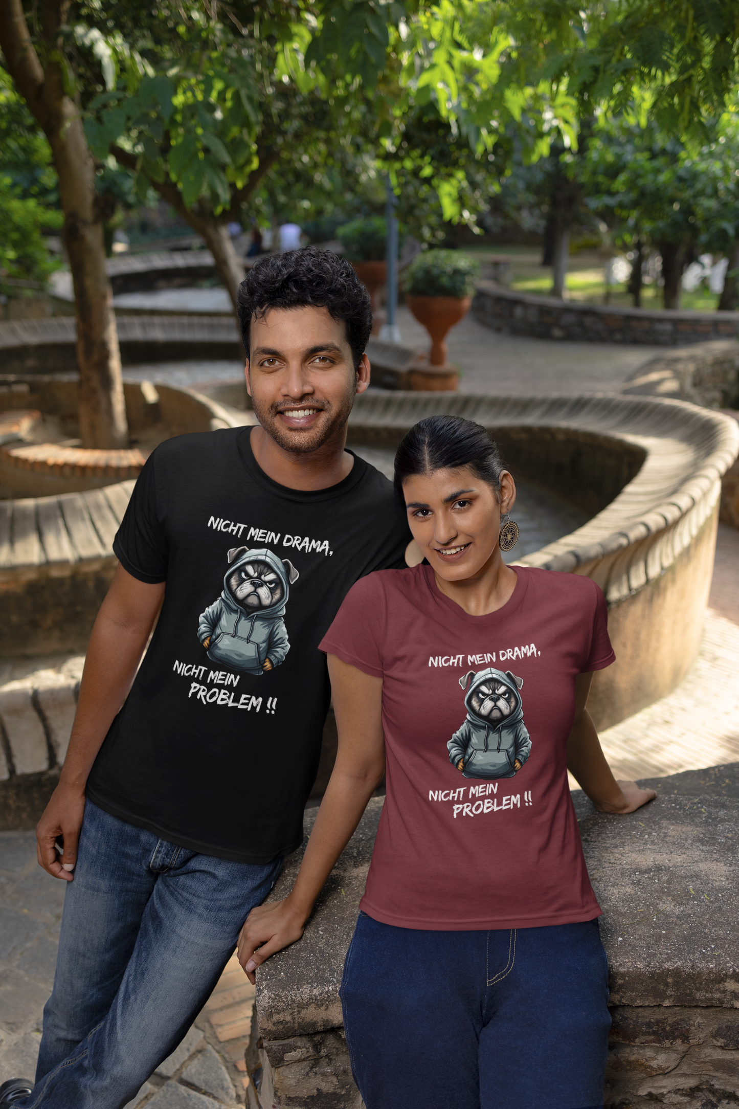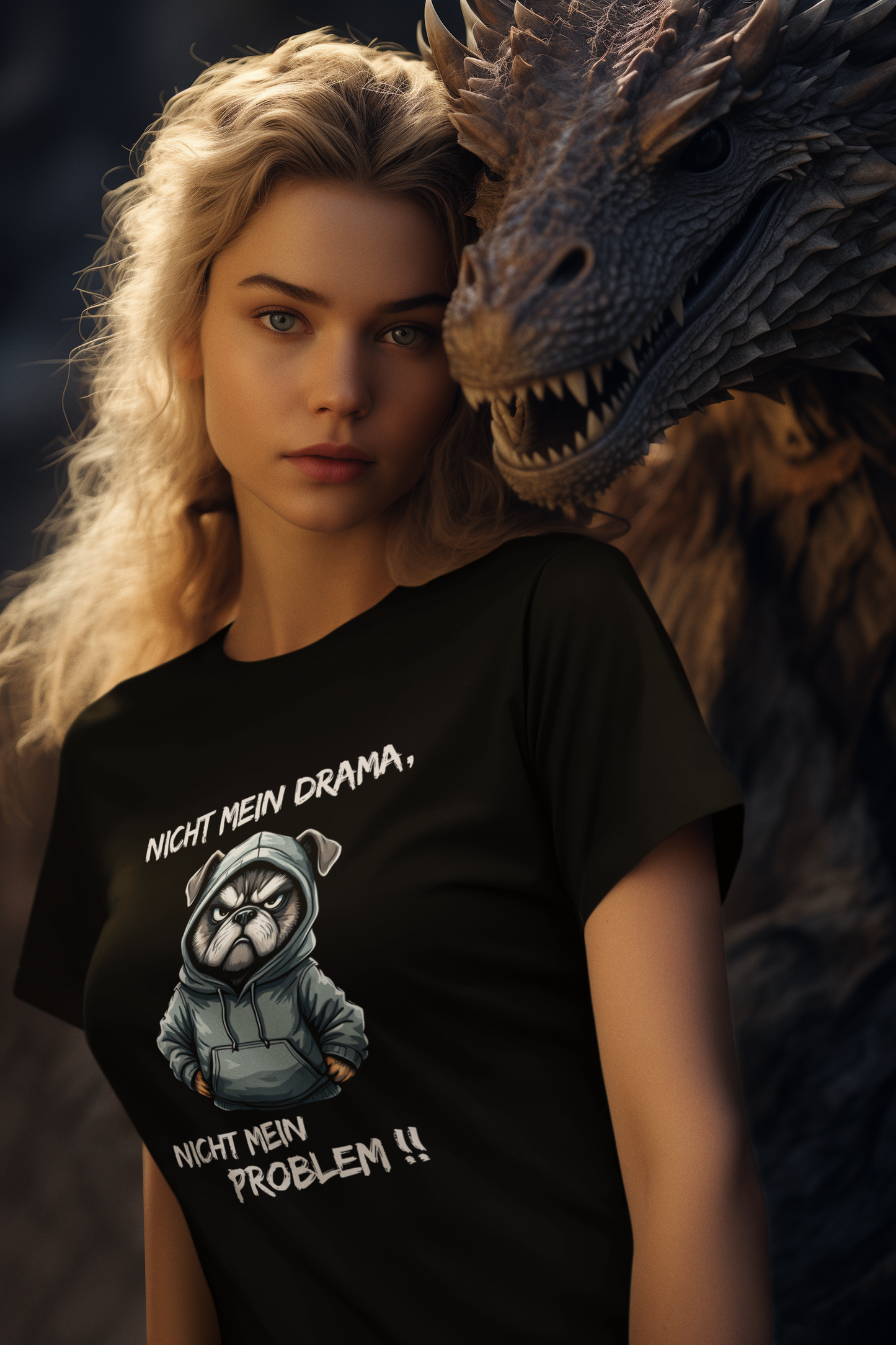 Unisex Erwachsenen Bio Baumwolle Kurzarm Shirt mit dem Design Nicht mein Drama, nicht mein Problem!! Hund Hoodie.