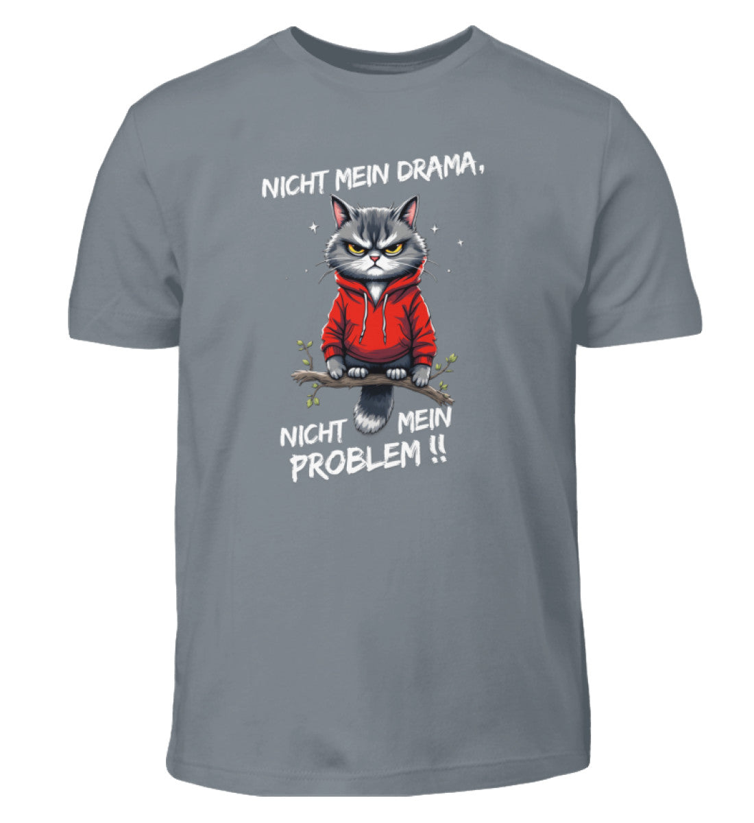 Nicht mein Drama, Nicht mein Problem!! Katze - Unisex Kinder T-Shirt Kurzarm-Shirt Bio Baumwolle Hochwertig Langlebig T-Shirt Kids BC SH
