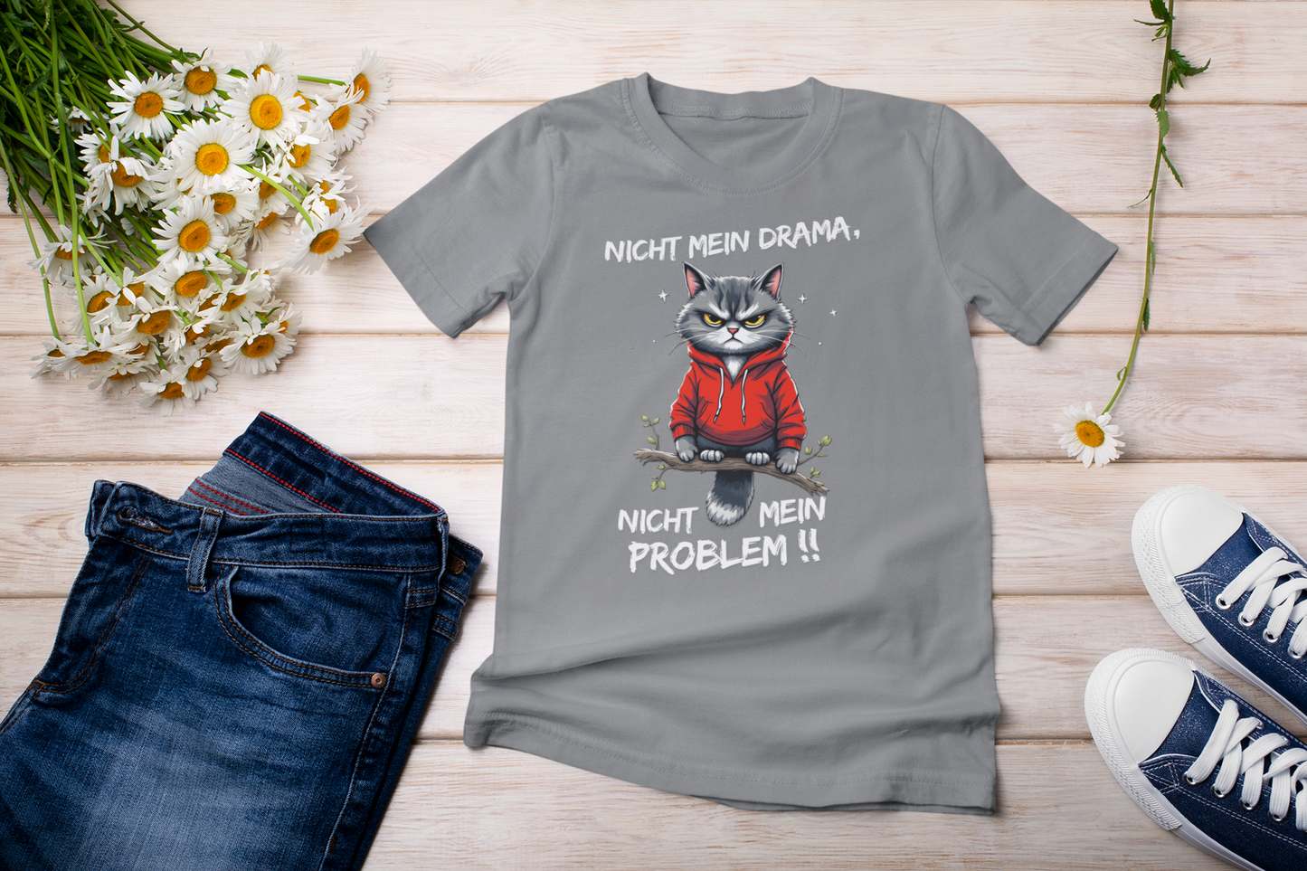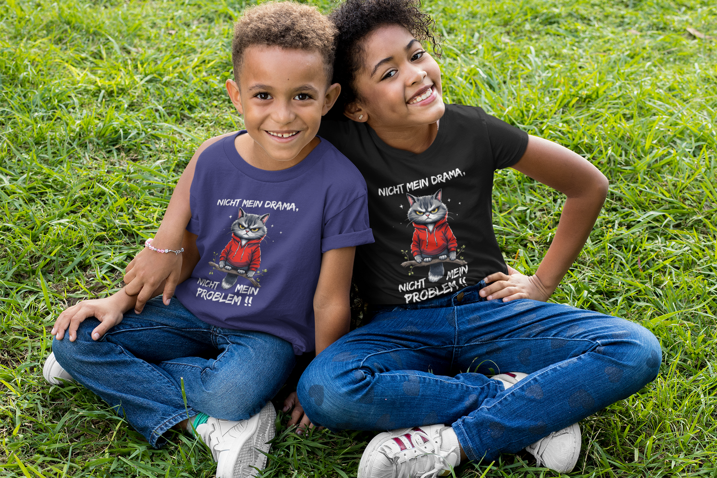 Unisex Kinder T-Shirt mit dem einzigartigen Design Nicht mein Drama, Nicht mein Problem!! Katze.