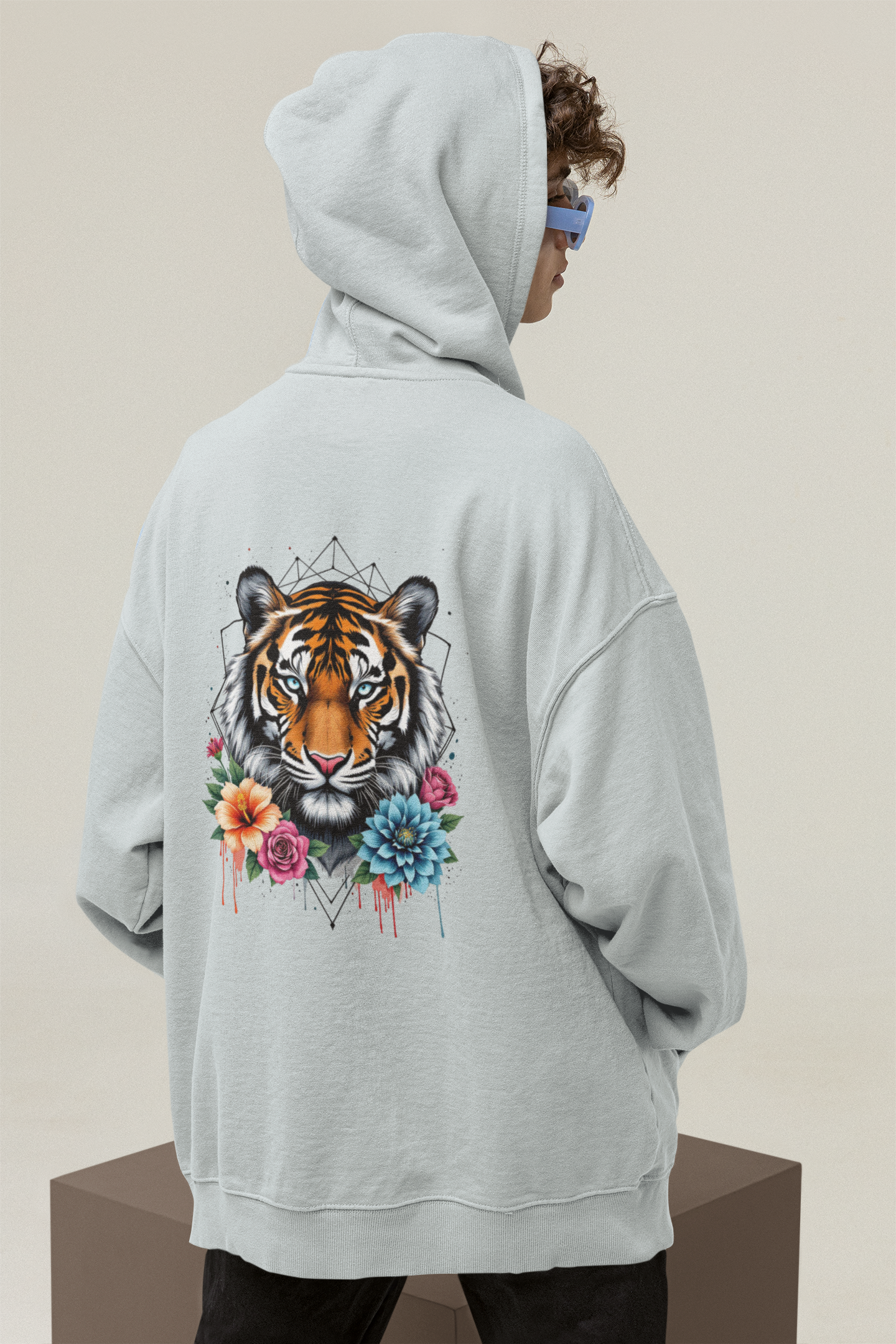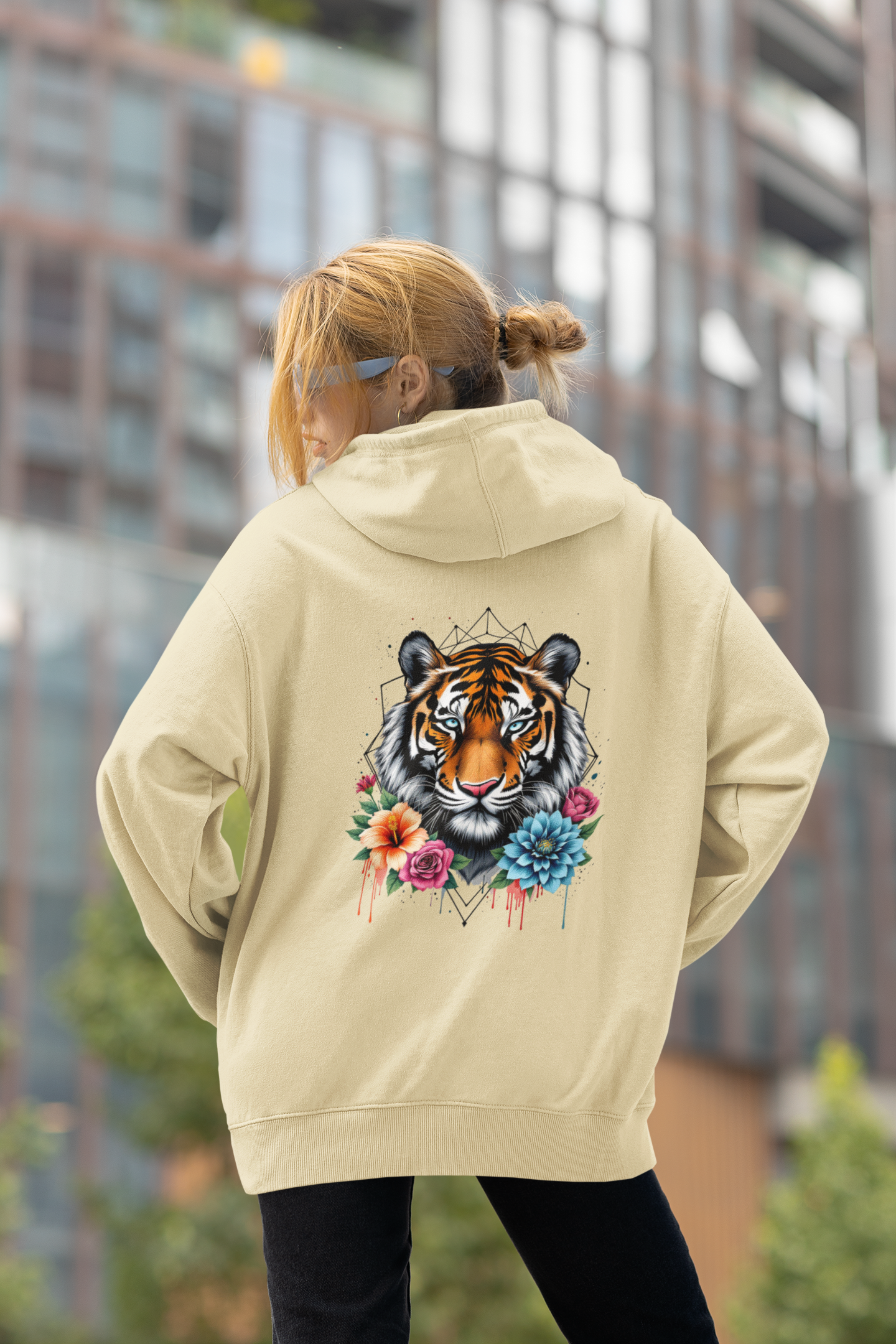 Unisex Oversized Hoodie Tiger Passion in Blumen Flower Power II Back.