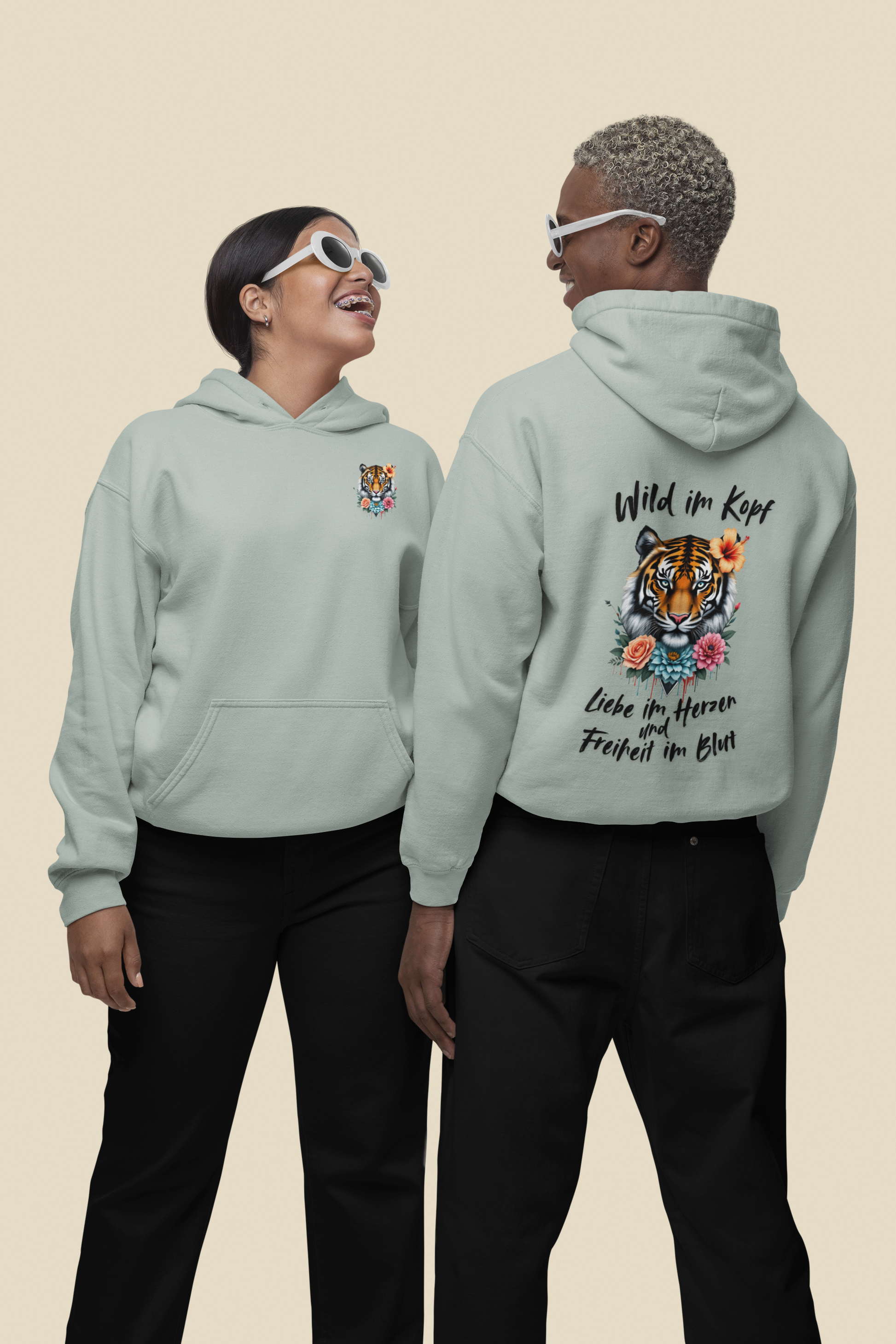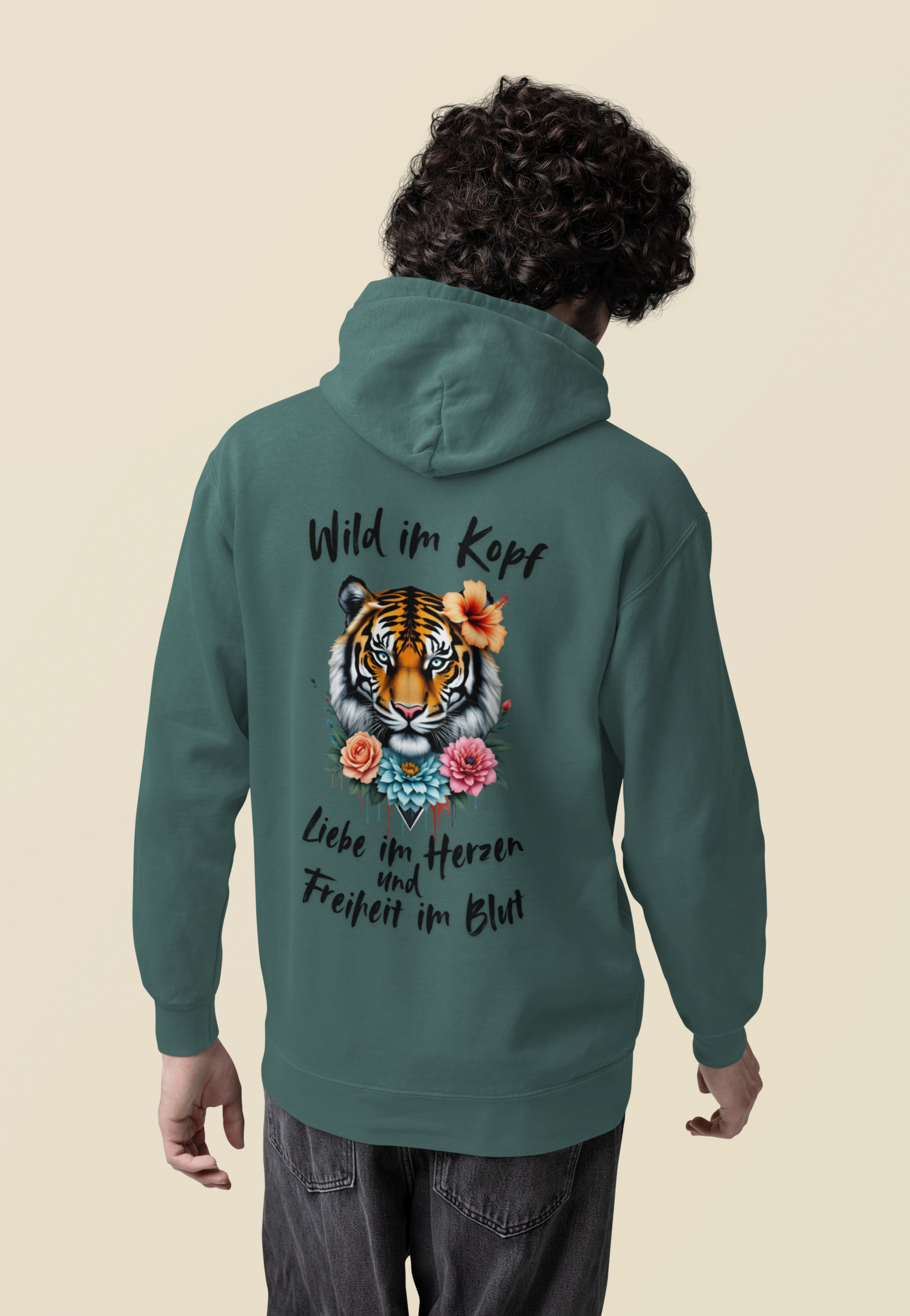 Unisex Hoodie Tiger Wild im Kopf Liebe im Herz Freiheit im Blut BS.