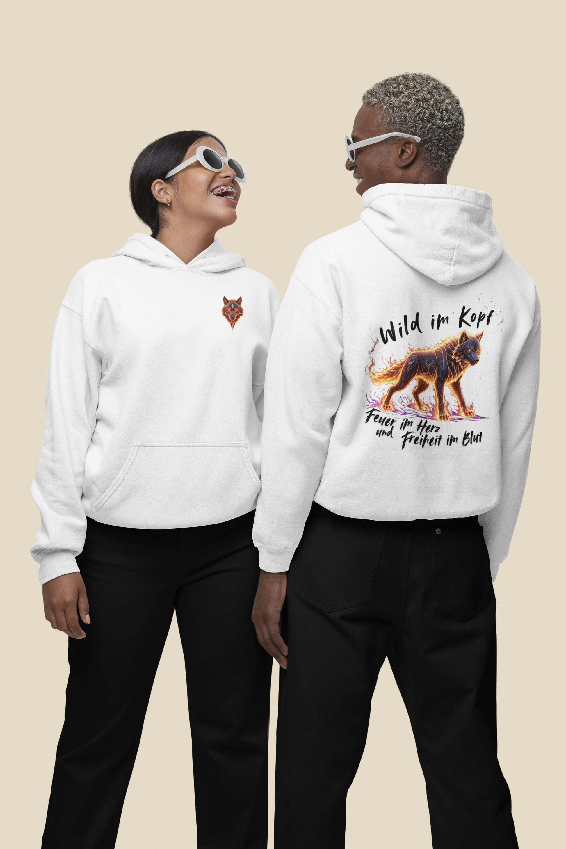 Unisex Hoodie Wolf Wild im Kopf Feuer im Herz Freiheit im Blut BS.